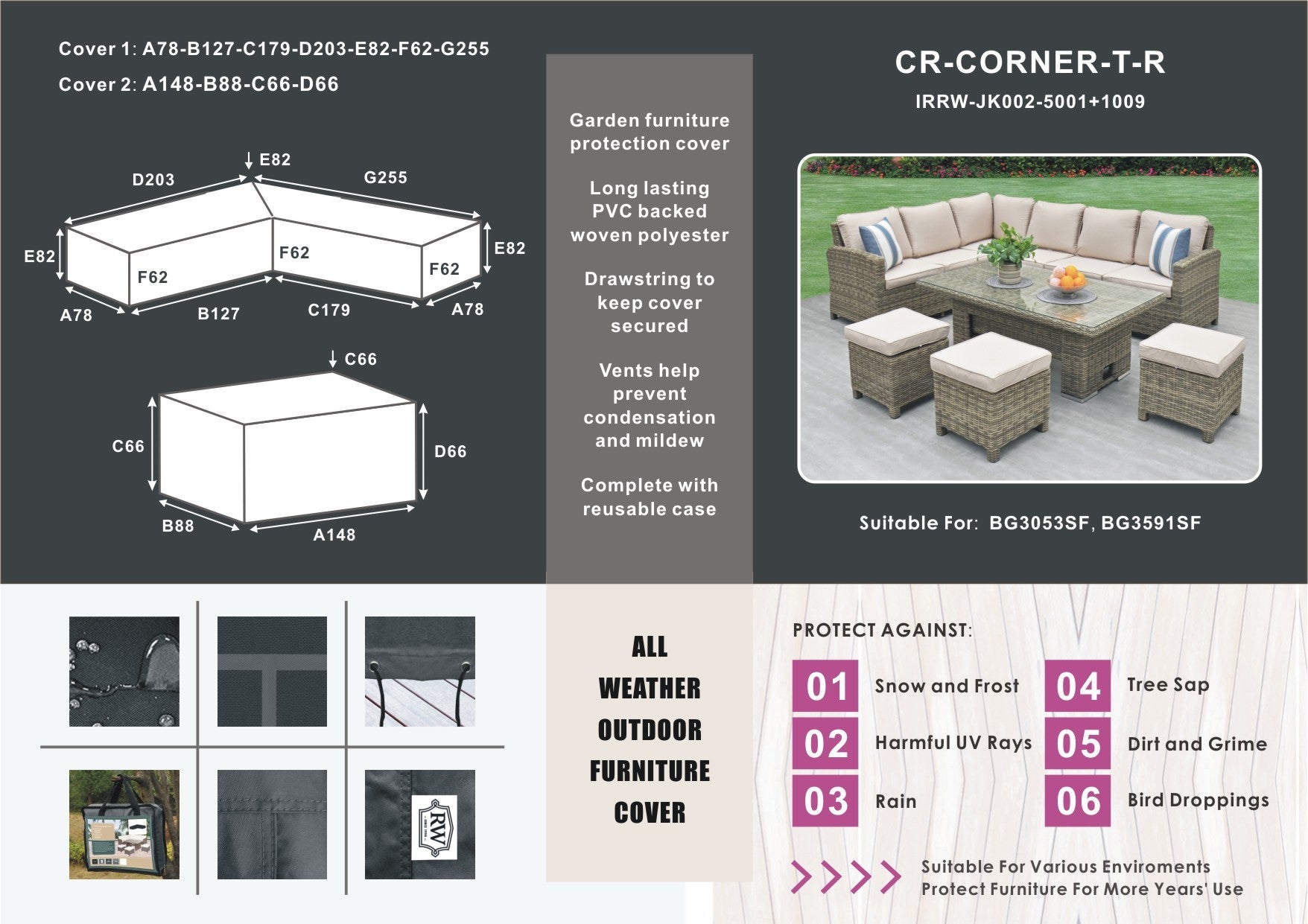 Protective Cover - Corner Set with Rectangular Table