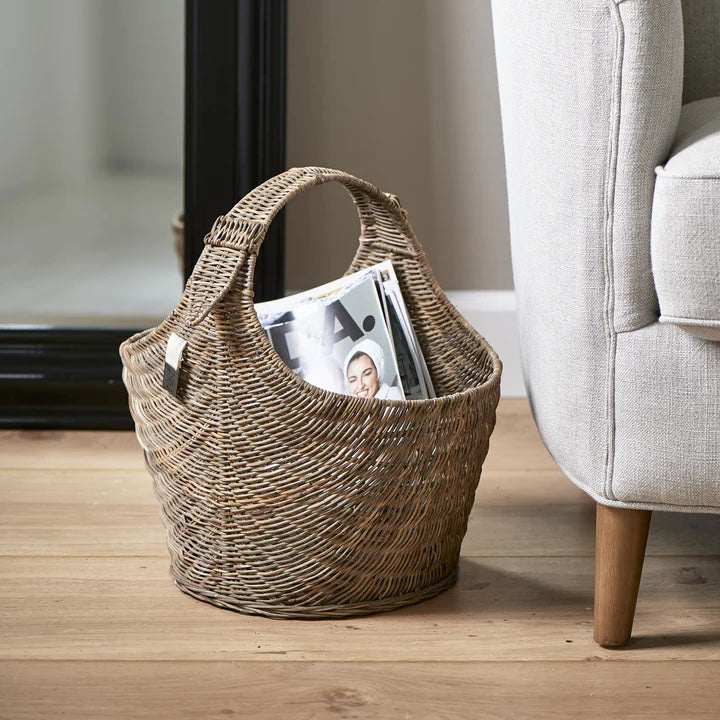 Country-Style Sideboard with Rattan Doors, Magnetic Closure Adjustable Shelves, Wood Tone