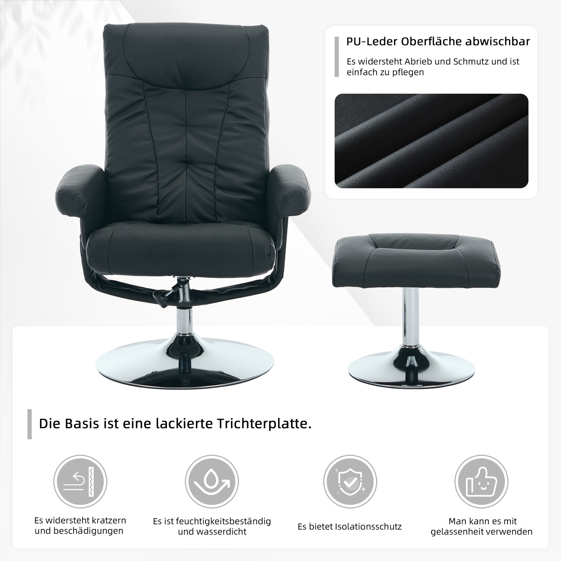 Recline up to 140° with Matching Footrest: Relax by reclining the backrest up to 140°, complete with a footrest for the ideal position.