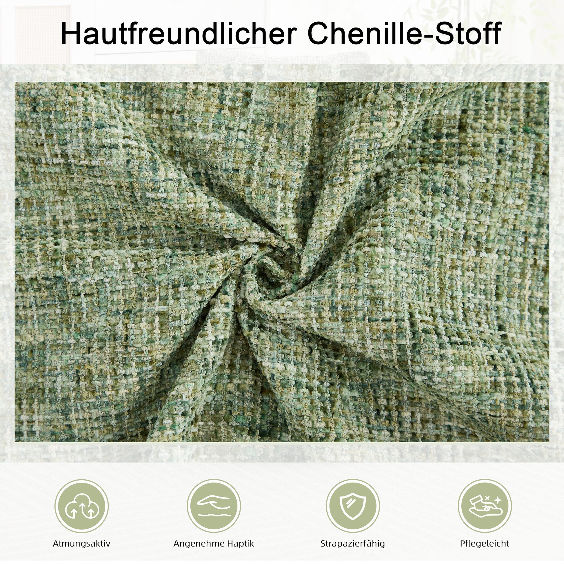 Design and Comfort: This luxurious and comfortable armchair features Chenille fabric, foam padding, and a plump back cushion, all constructed on a stable wooden frame (72 x 66.5 x 76 cm). It guarantees the comfort of a sofa for your room or corner.
