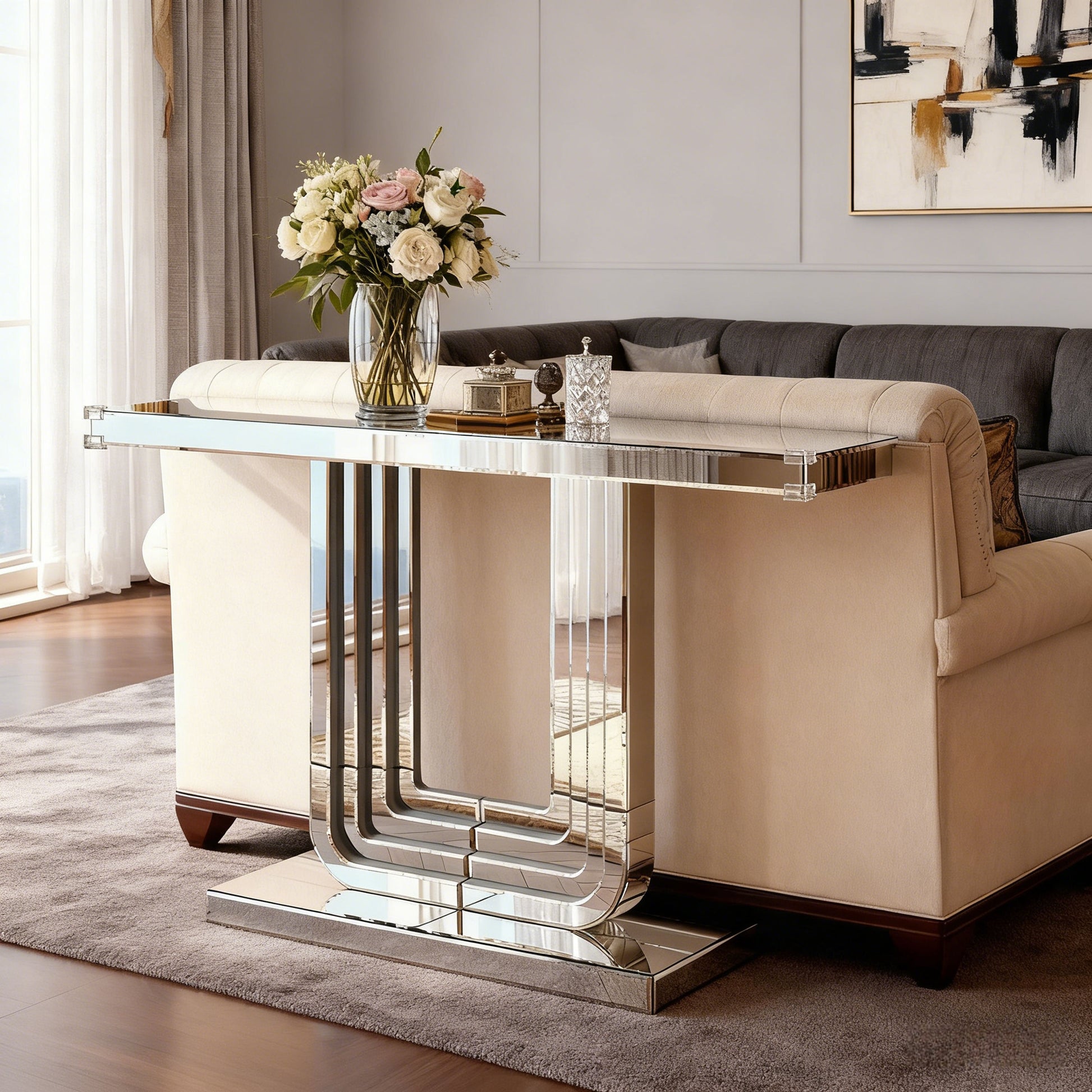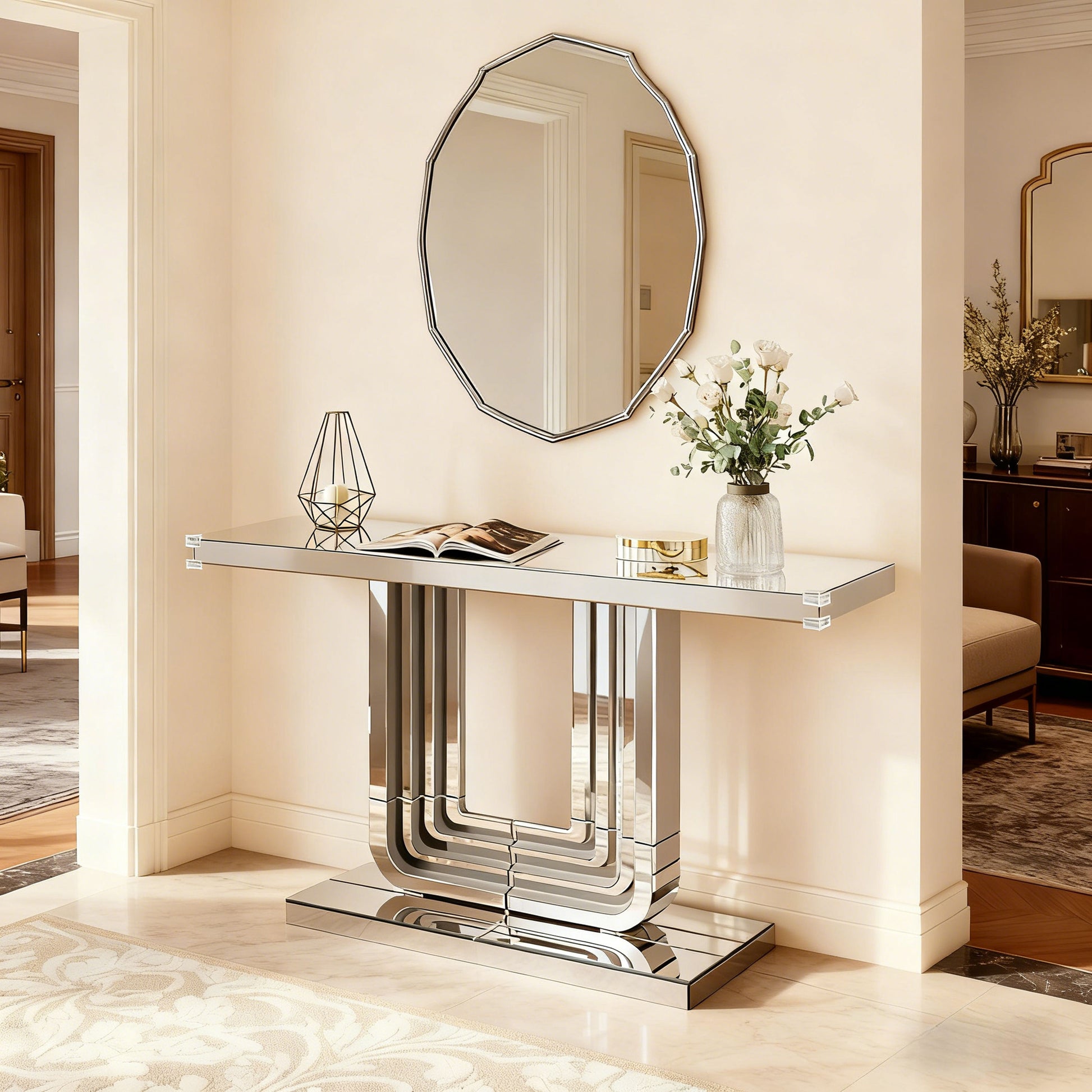 120cm Mirrored Console Table, Elegant U-Shaped Base, Silver Finish
