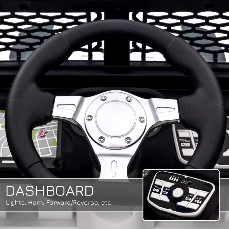 OFF-ROAD TRUCK DESIGN: A super cool design, your child will love going outside and playing in this. LED headlights, illuminated dashboard gauges, and realistic steering wheel create an experience of driving a real SUV.