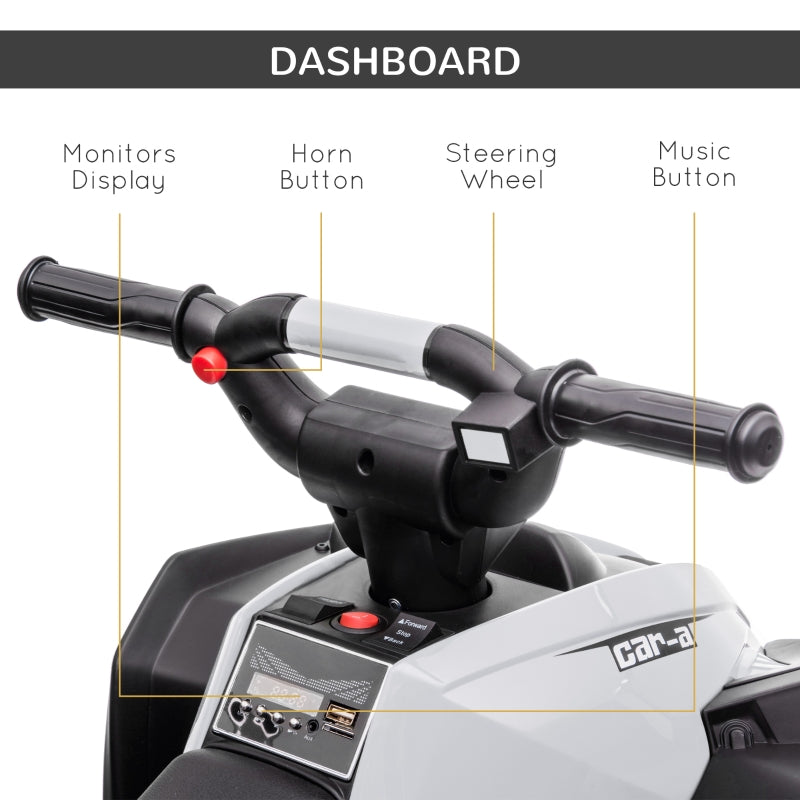 12V Ride-On Quad Bike with Music, Horn, White