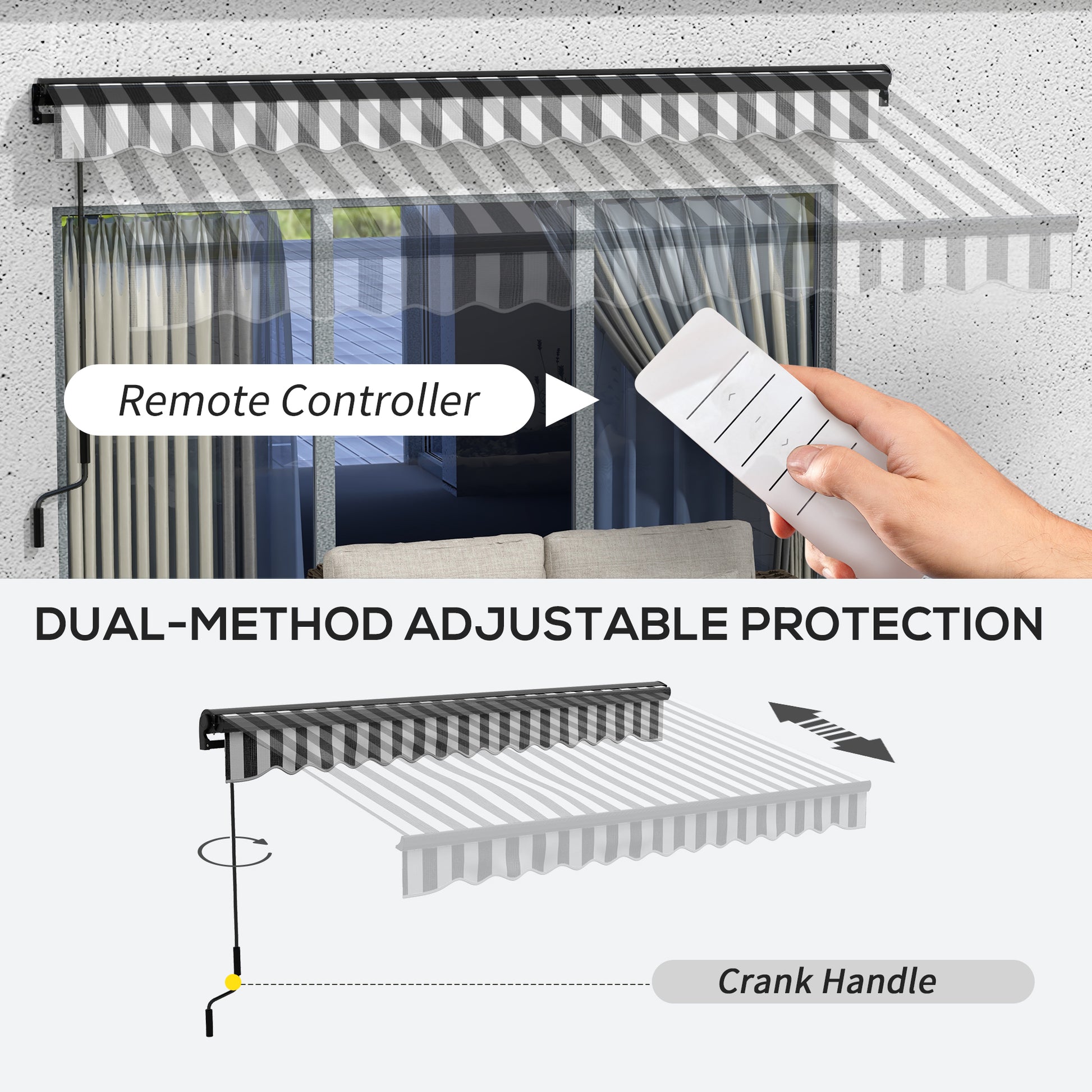 2.5 x 3.5m Electric Awning with Remote Aluminium Frame Grey/White