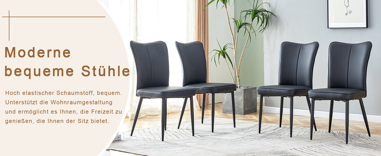 High-Quality and Easy-to-Clean Material: The backrest and seat are made of PU material combined with metal components. This not only gives it an elegant look but also makes cleaning particularly easy. A simple wipe with a damp cloth and mild detergent is all it takes to make the dining chair look like new.