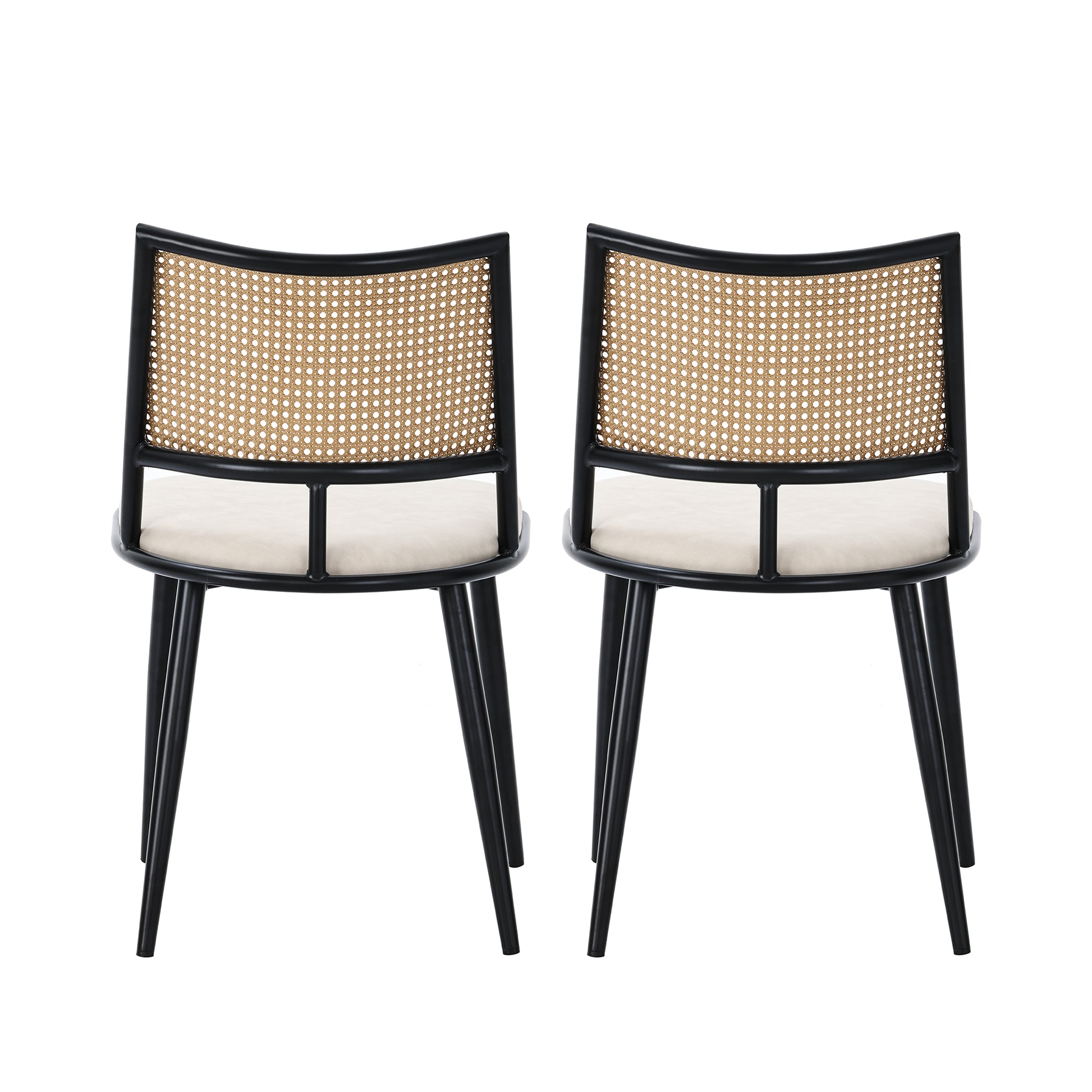 2 Dining Chairs, Rattan Backrest, PU Seat, Black