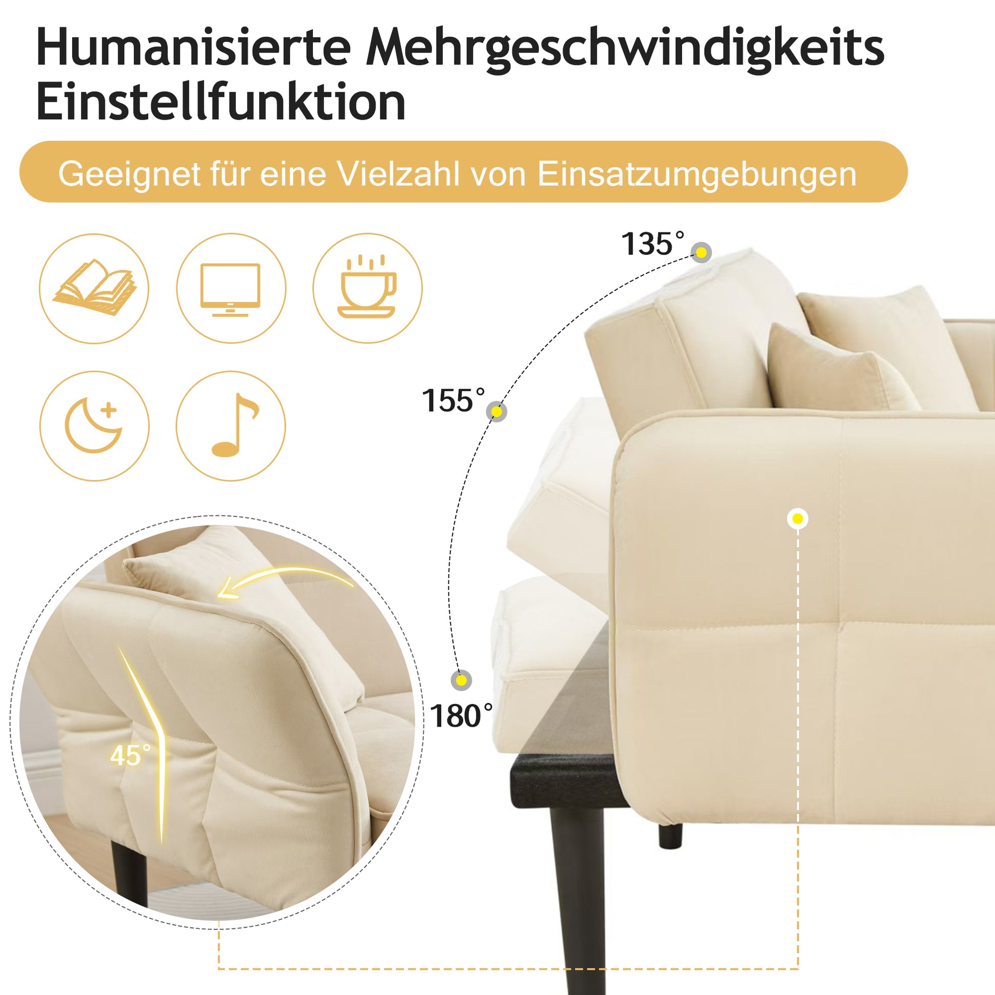 2-in-1 Adjustable Sofa Bed, Two-seater with Folding Armrests and Sleeping Function, Velvet
