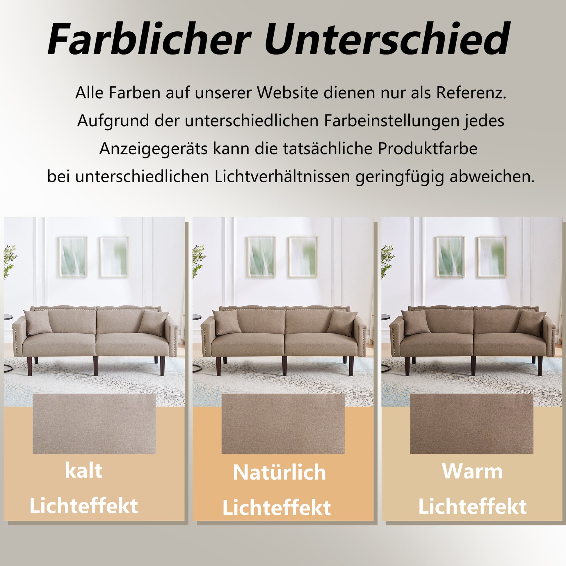 2-in-1 Multifunctional Sofa Bed, Two-Seater Reclining with Adjustable Backrests, High-Density Foam, Cotton Linen