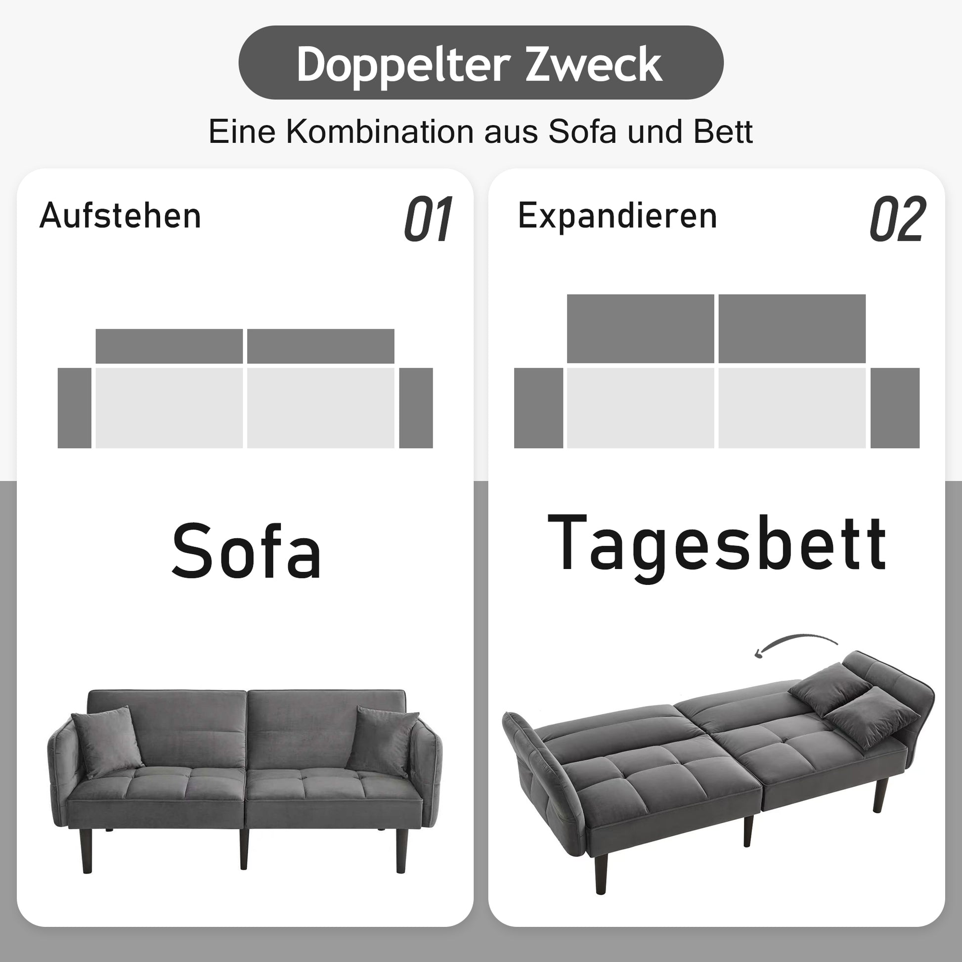 2-in-1 Sofa Bed, Two-seater Folding Armrests Sleeper, Velvet