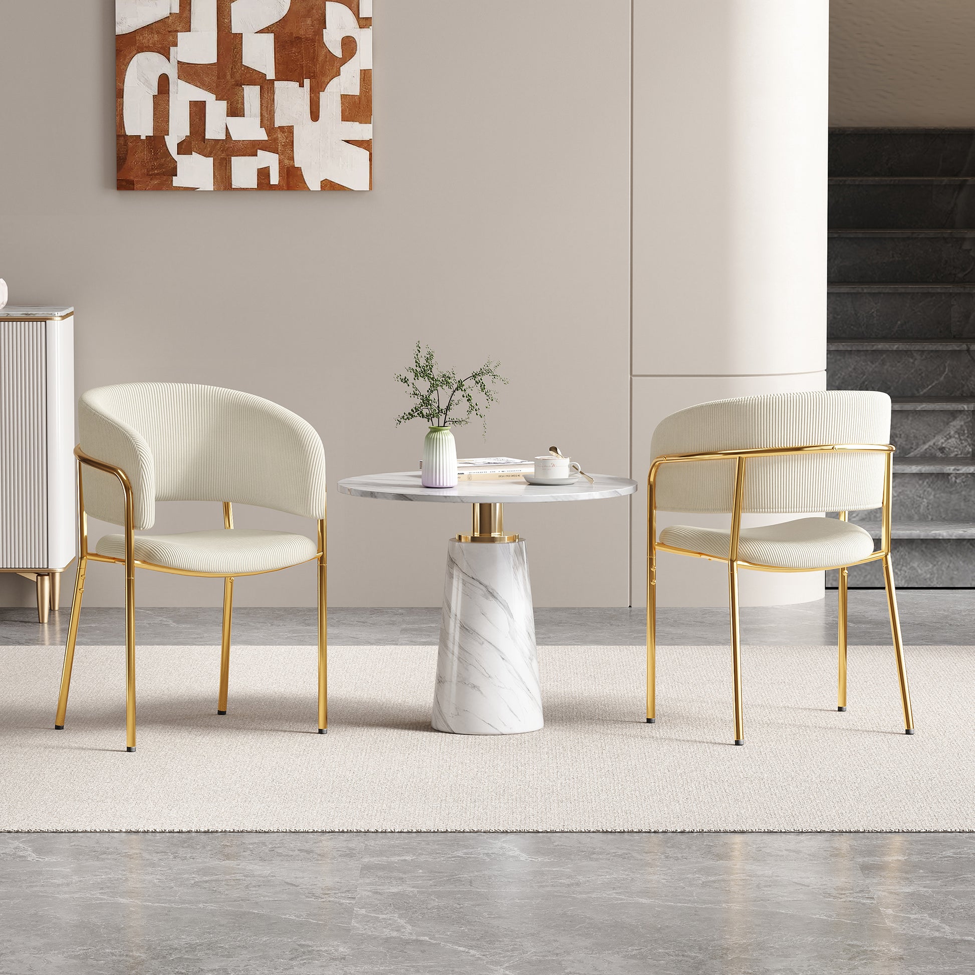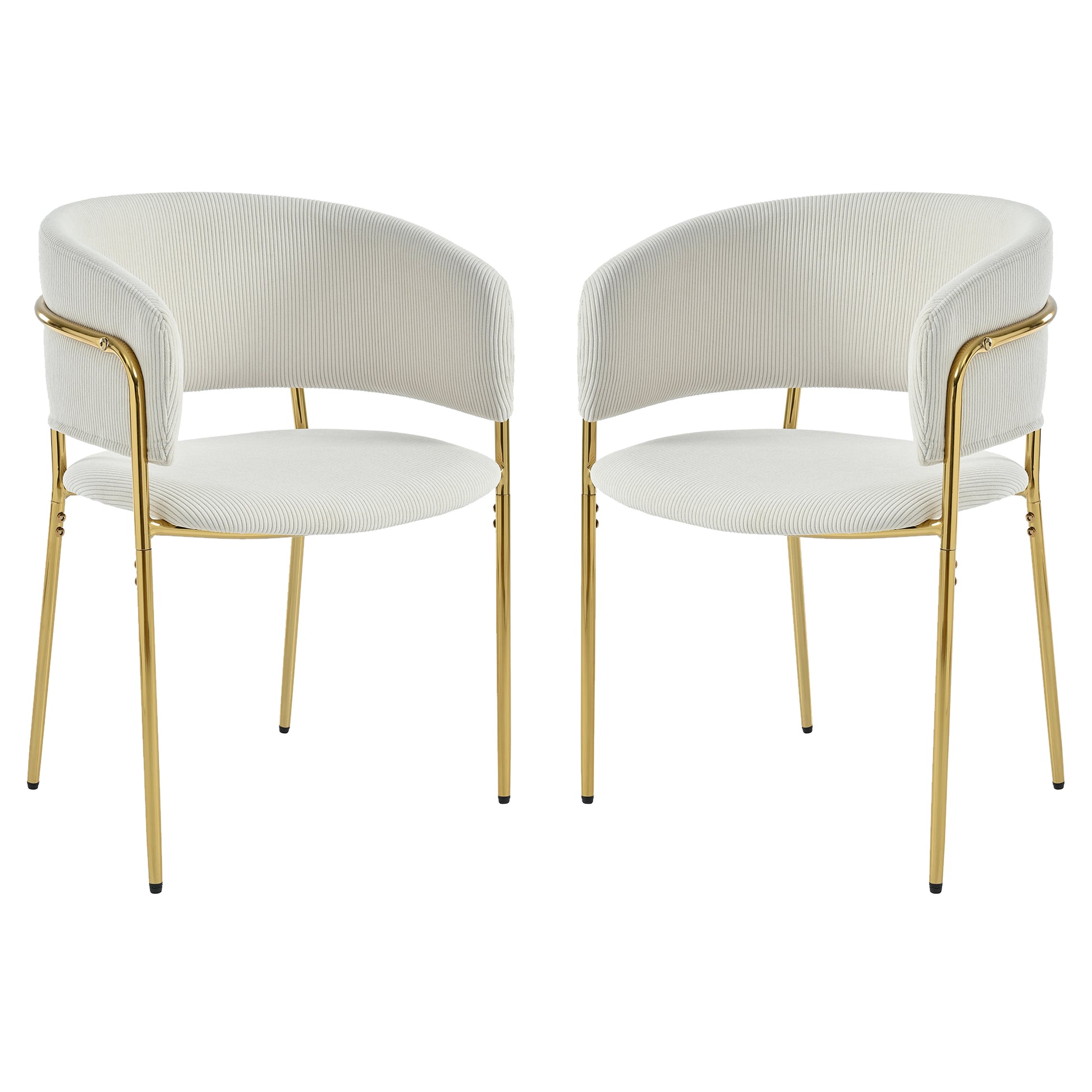 2 Modern Chairs with Angled Legs and Adjustable Feet, Beige Corduroy