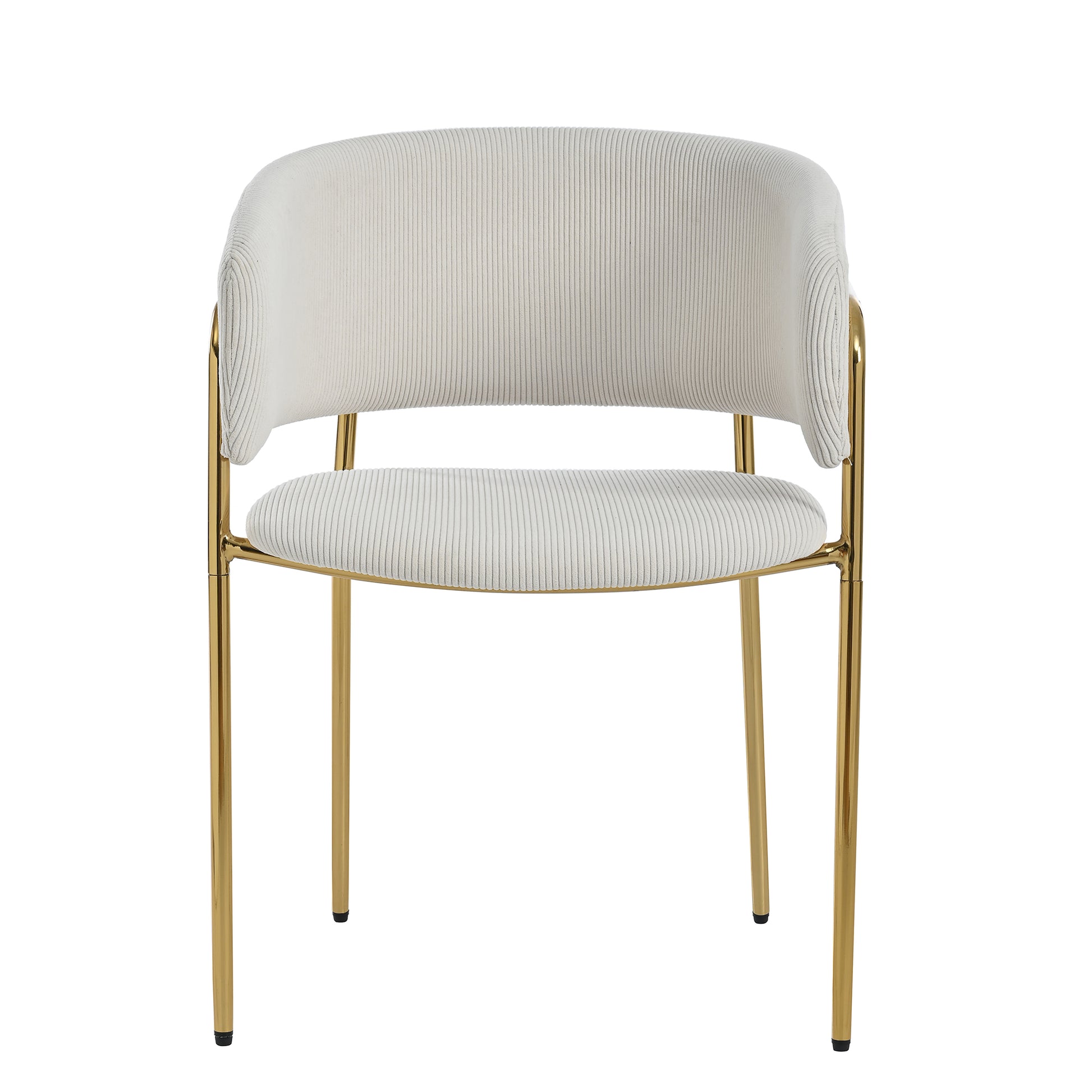 These modern chairs feature a durable construction with corduroy fabric and iron legs, supporting a weight capacity of 150 kg per piece. The seat size is 45.72 cm wide by 45.72 cm deep. The footrests are adjustable.