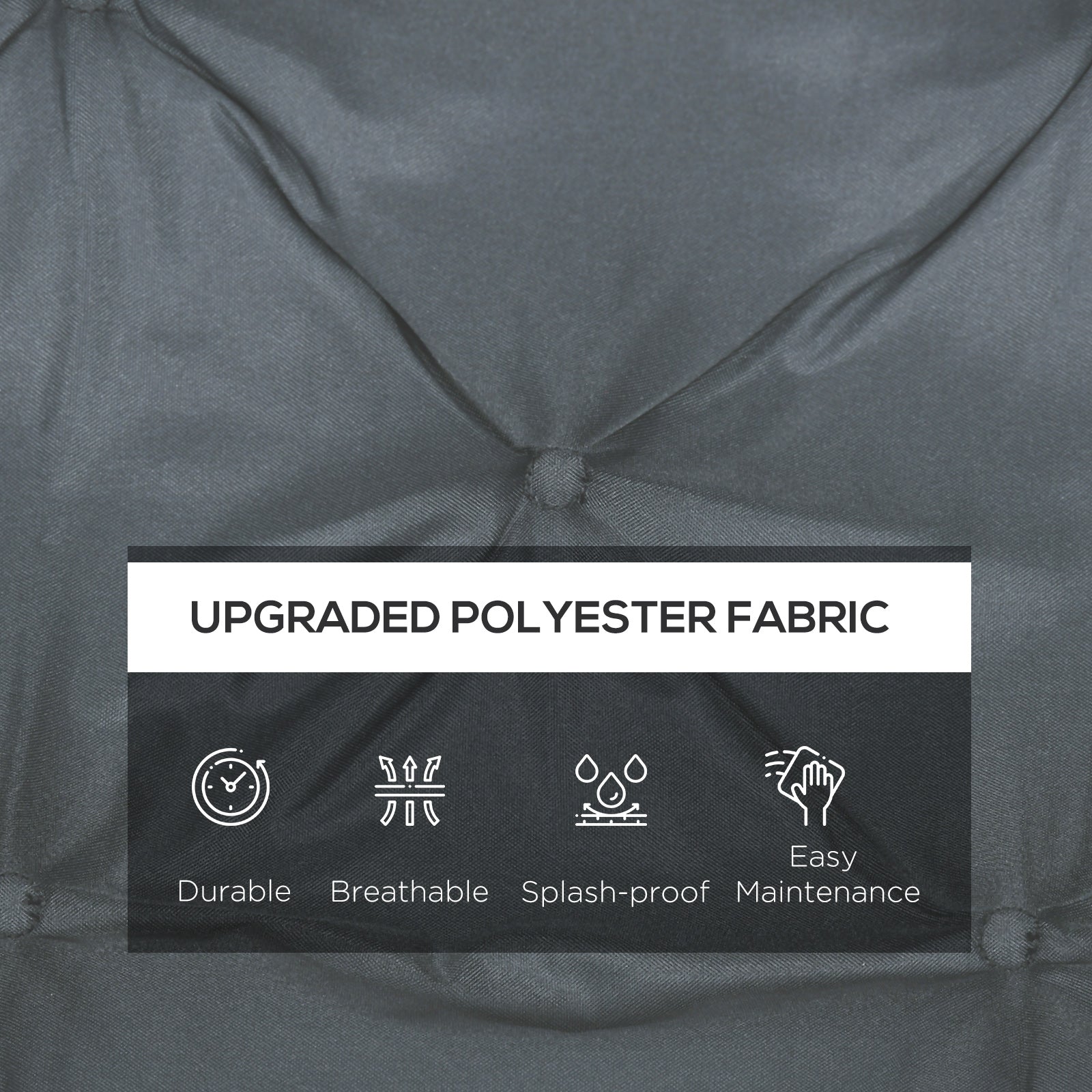Fabric cover: Breathable polyester makes this outdoor seat pad smooth on the skin. It is splash and stain resistant and easy to spot clean.
