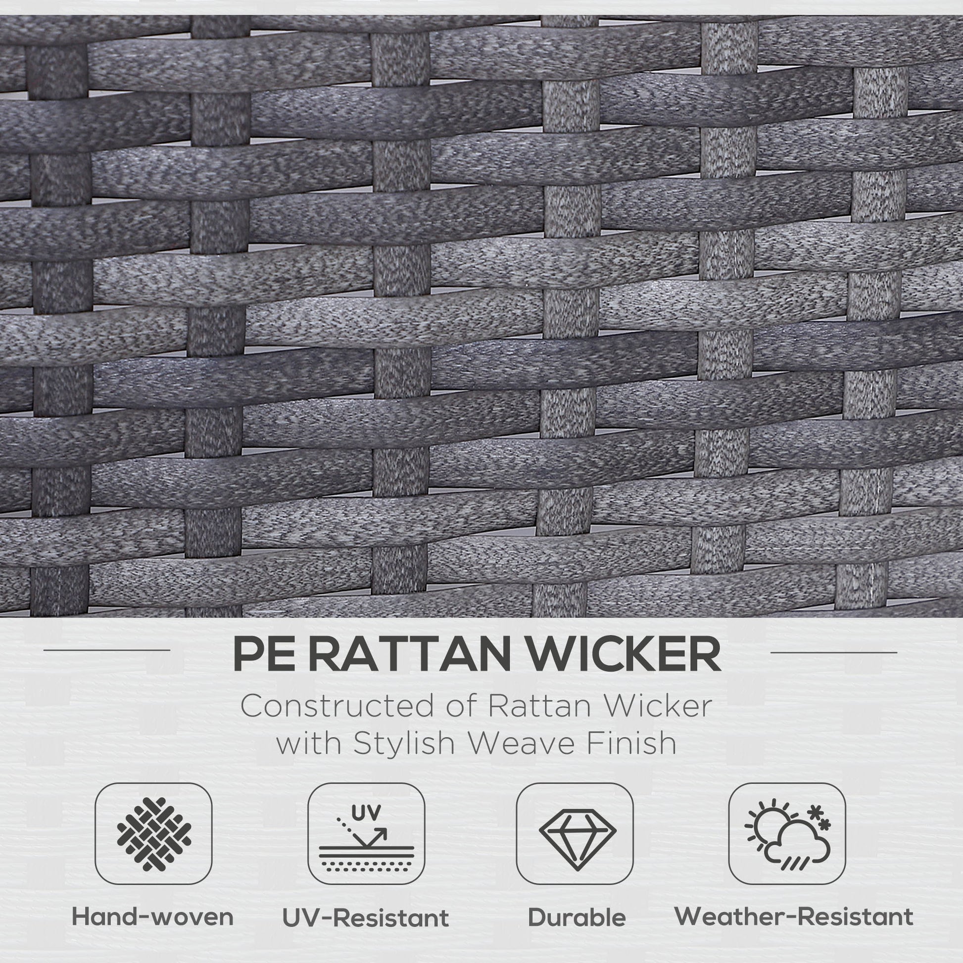 Metal wrapped in rattan: Powder-coated, rust-resistant steel ensures a strong and stable base. The PE wicker makes it sturdy, durable, easy to clean, and resistant to UV and light water damage.