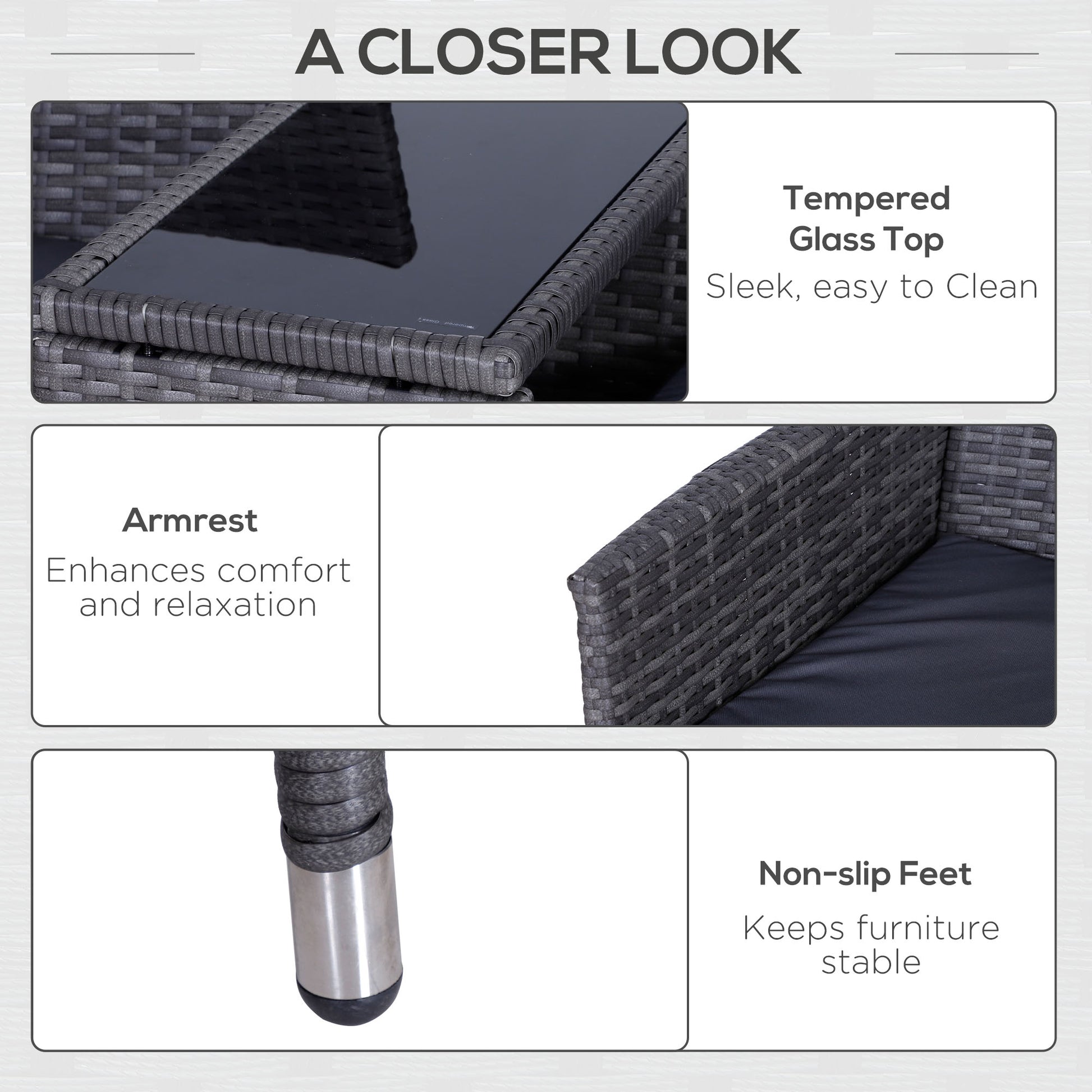 2-Seater Garden Bench, PE Rattan Outdoor with Centre Table, Grey