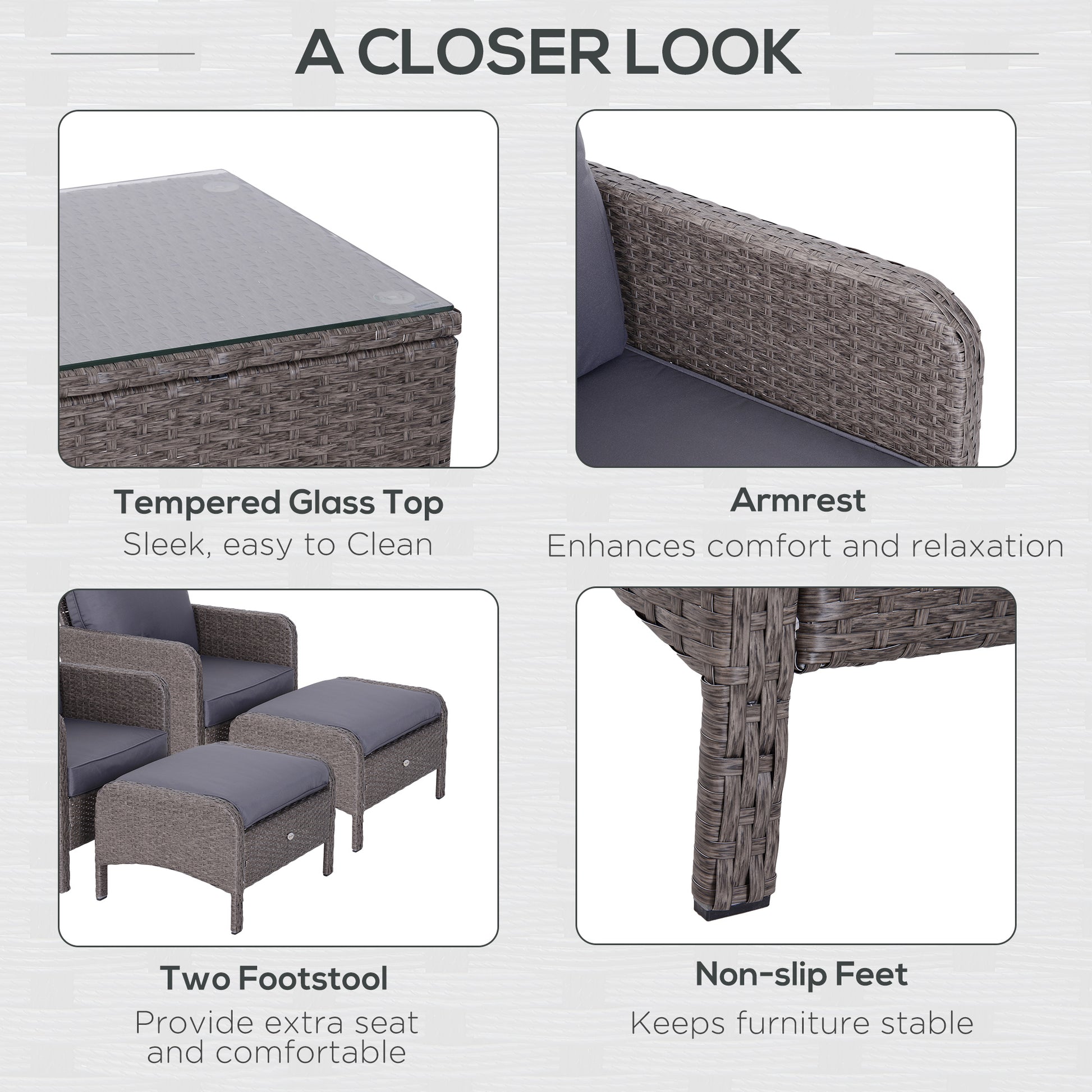 2-Seater Rattan Furniture Set, Steel Frame-Grey