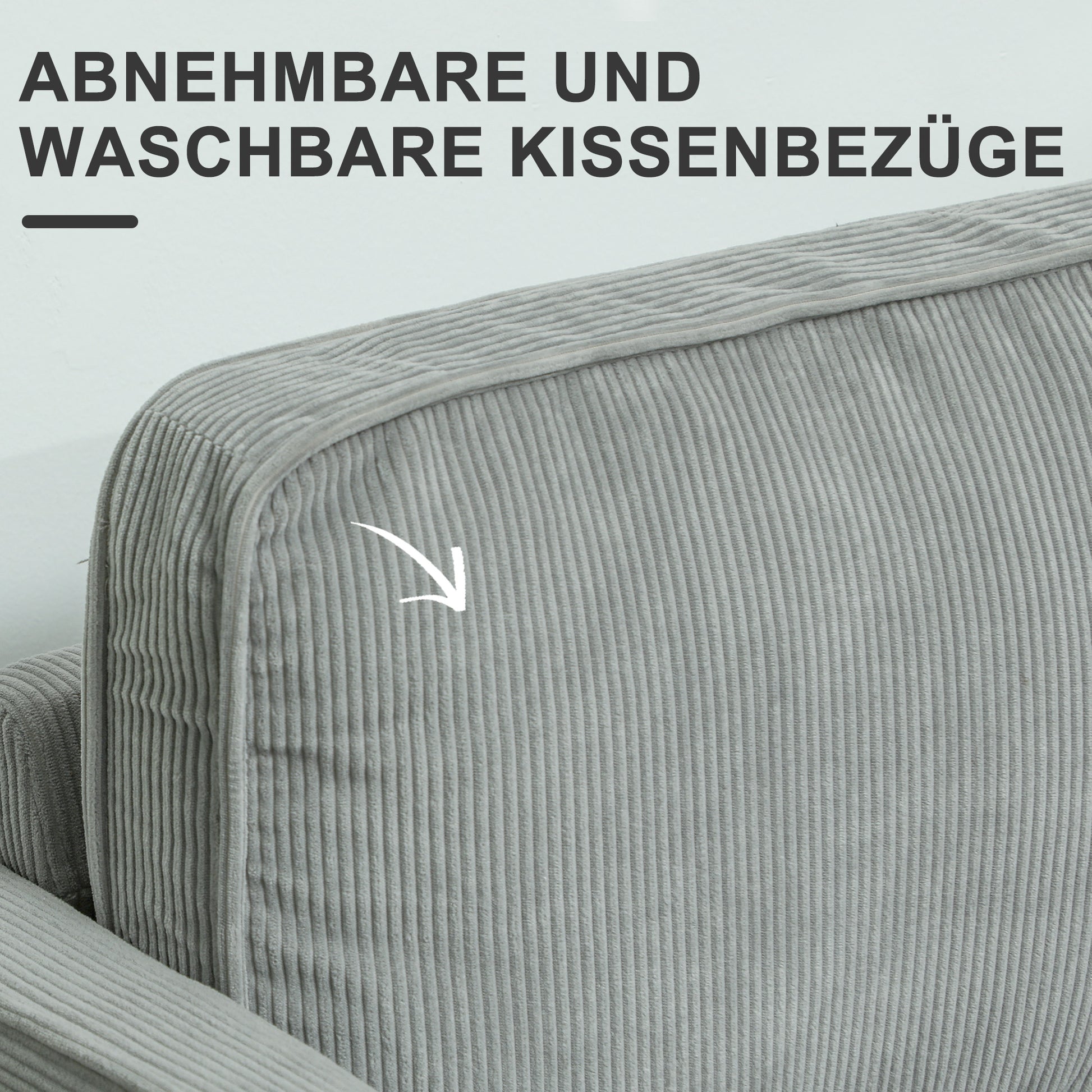 2-Seater Sofa, Small with Armrests Storage Corduroy Light Gray