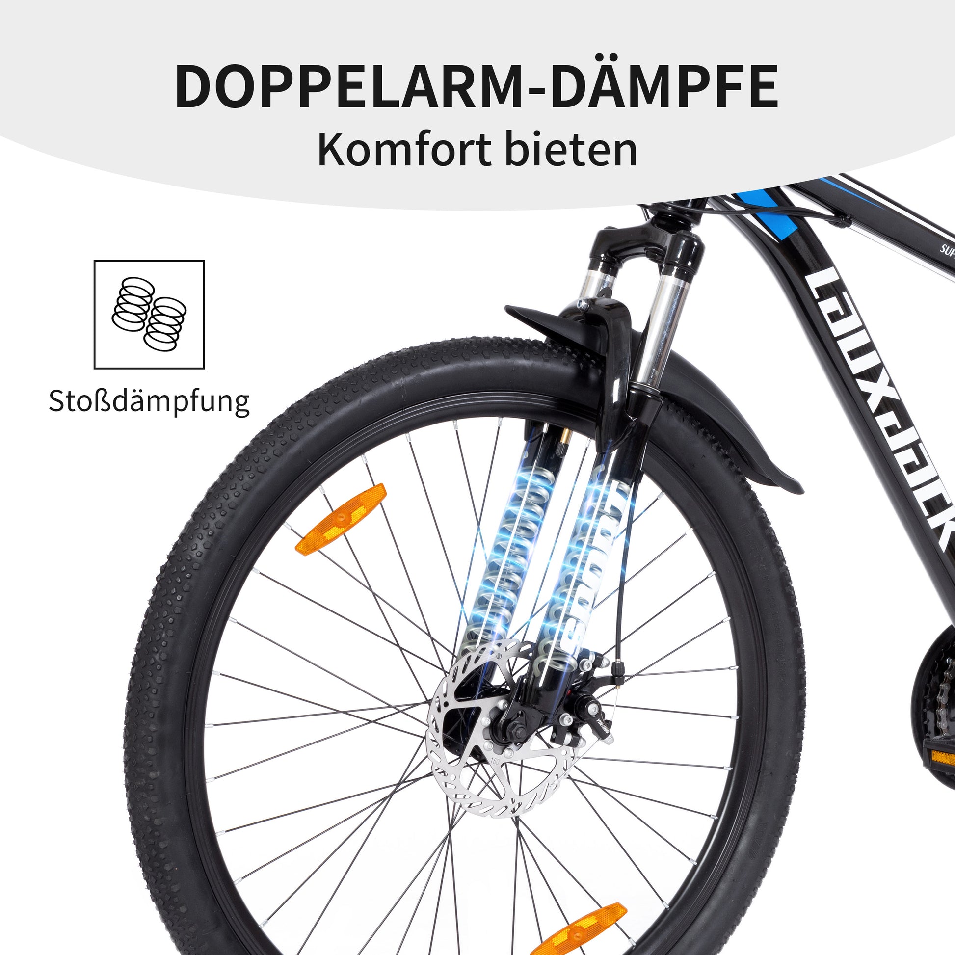 Featuring a modern and unique design, this bike is a real eye-catcher. The non-slip handlebars ensure a secure grip and optimal control in every riding situation. Equipped with a durable frame and suspension fork, this mountain bike offers high riding comfort and stability, even on uneven terrain.