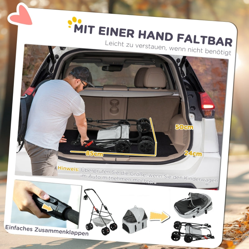 3-in-1 Pet Stroller, Folding Dog Cart with Removable Carrier, Grey