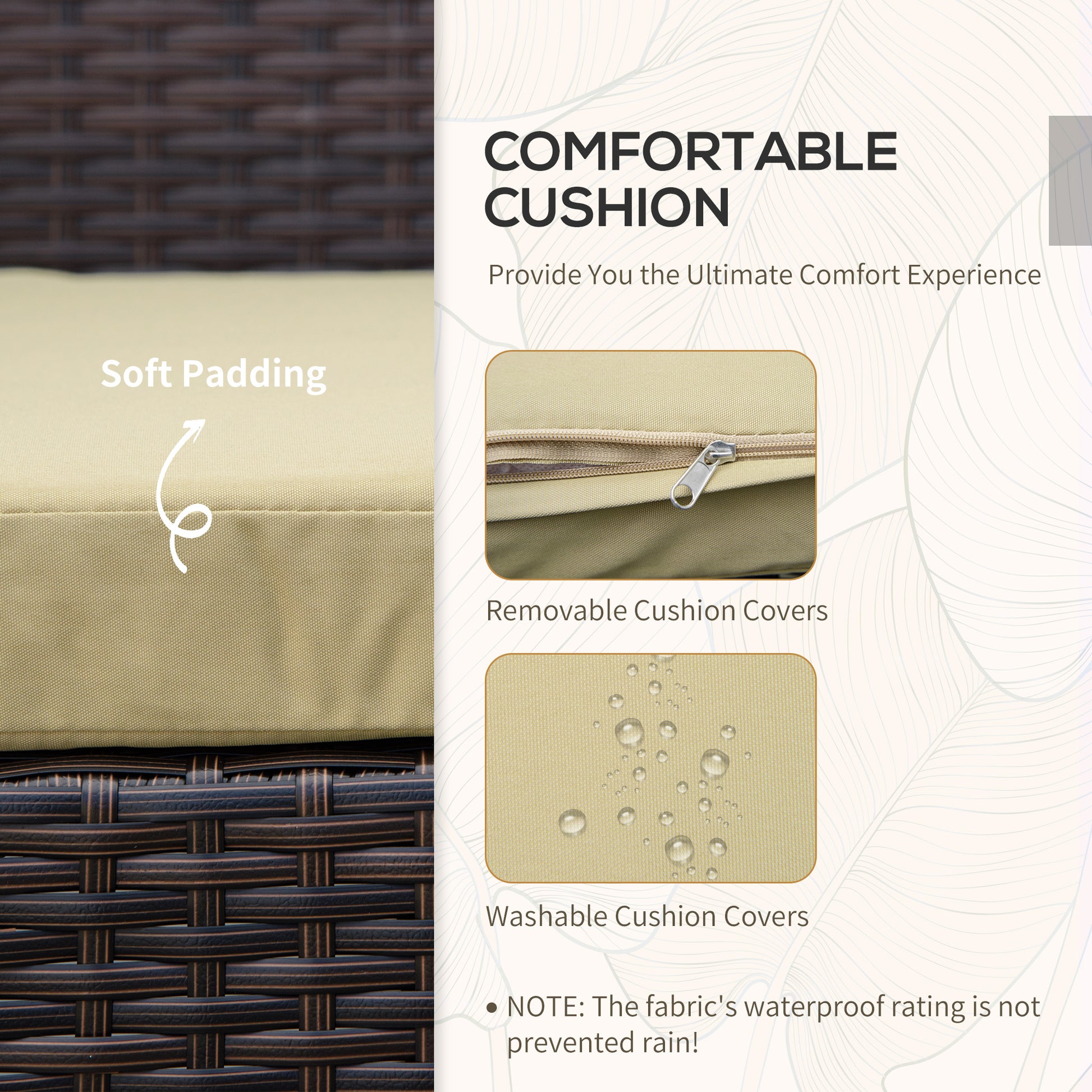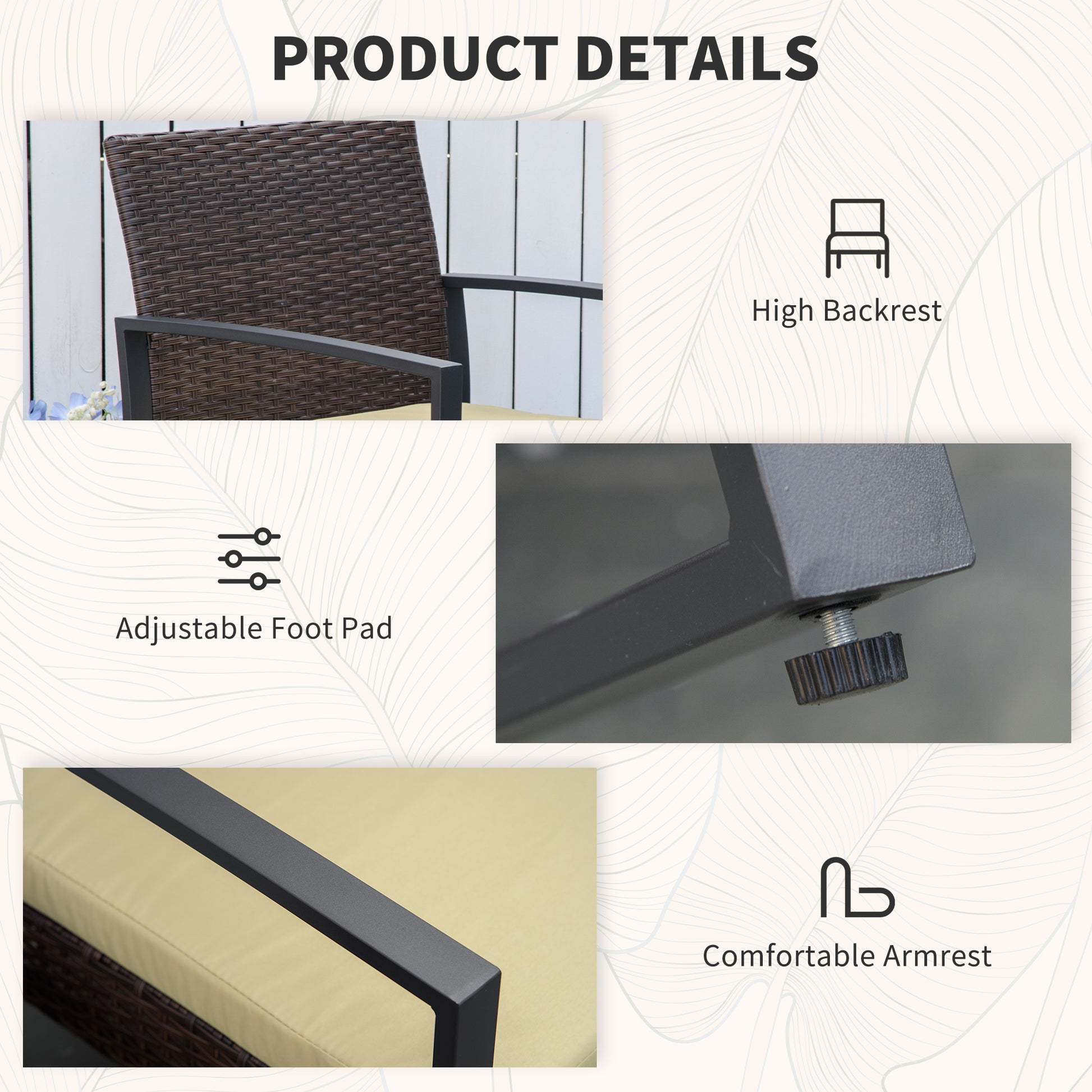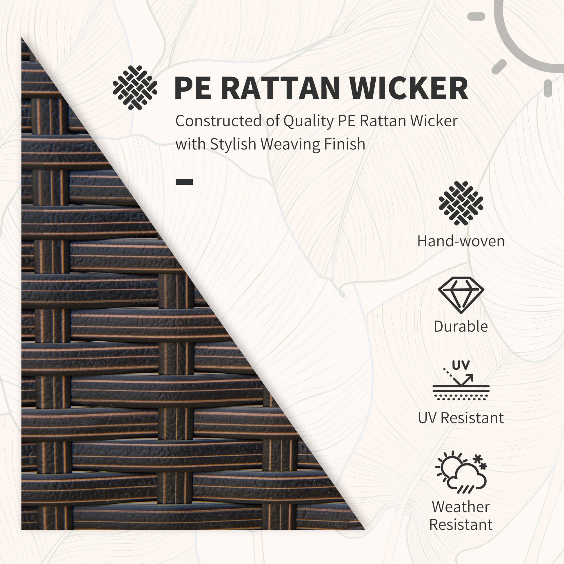 Crafted from high-quality PE wicker rattan, this set is built to last, durable, and fade-resistant. A metal frame provides strength and stability.