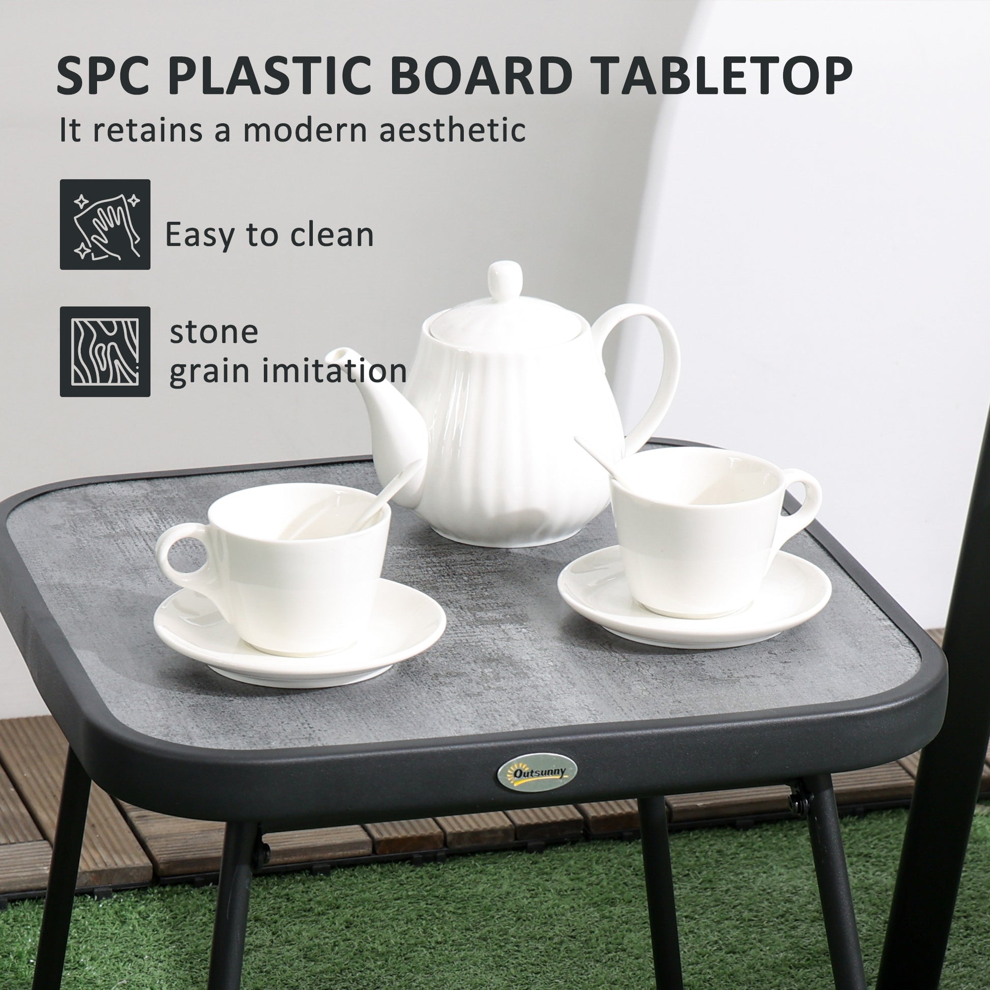 3 Pieces Outdoor Bistro Set, Stackable Armchairs, Mesh Fabric/SPC Table, Brown
