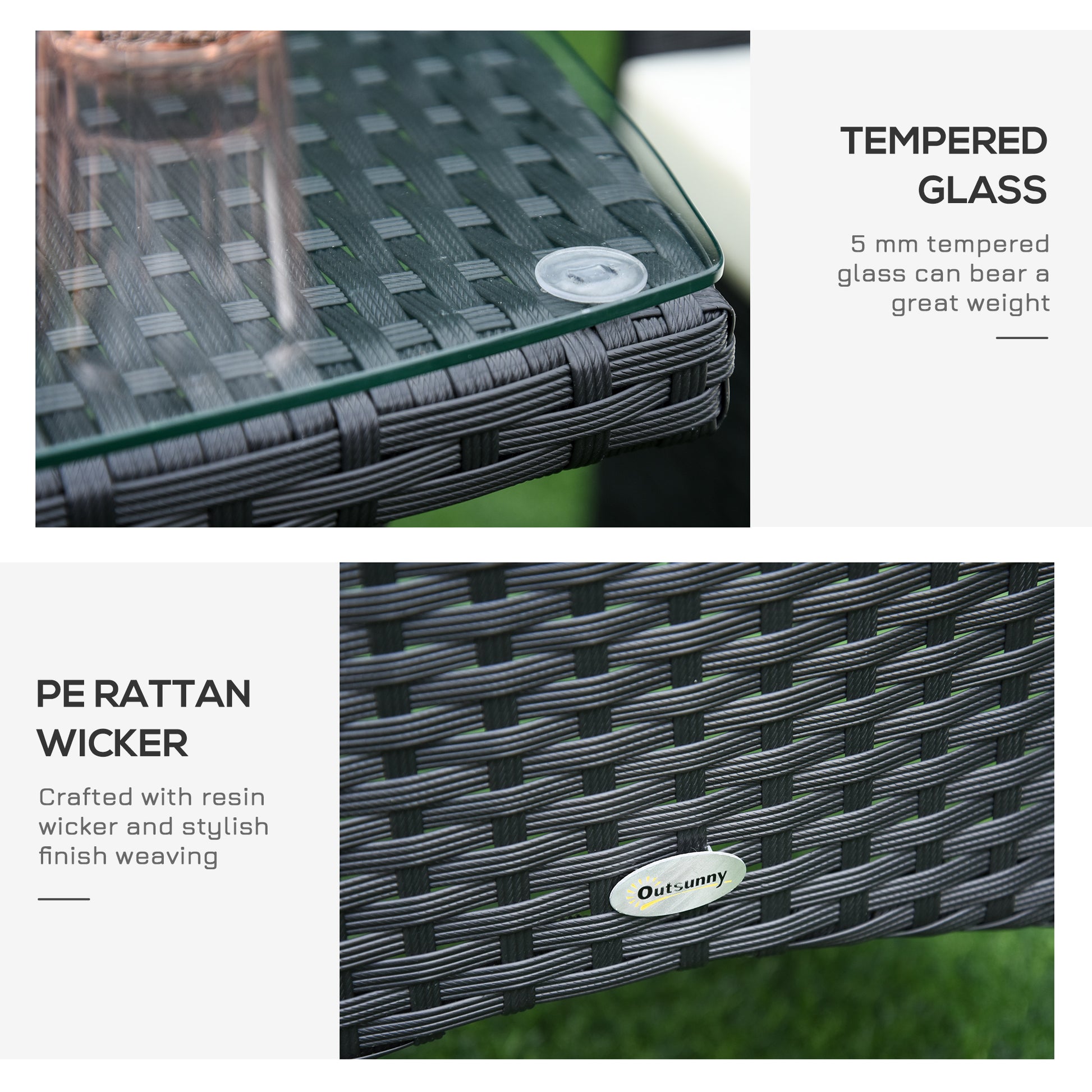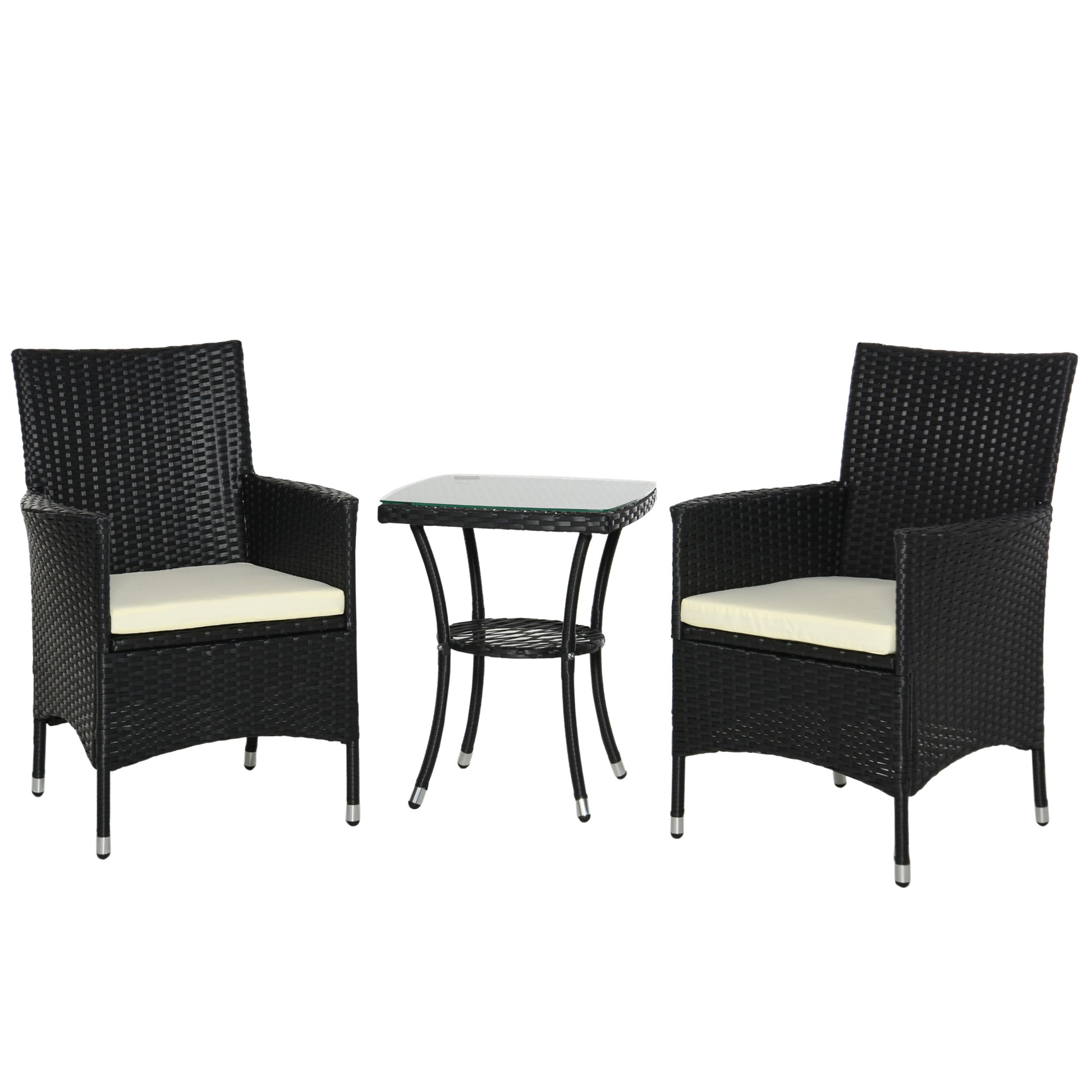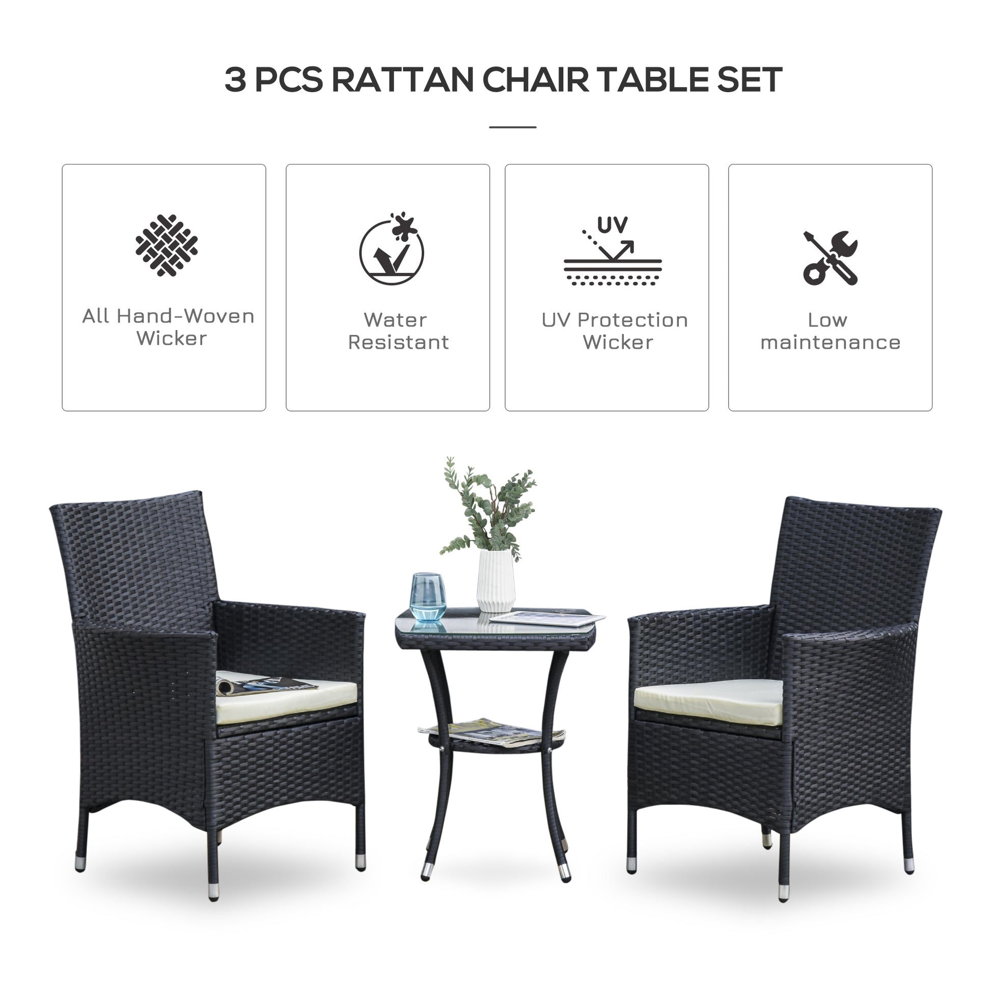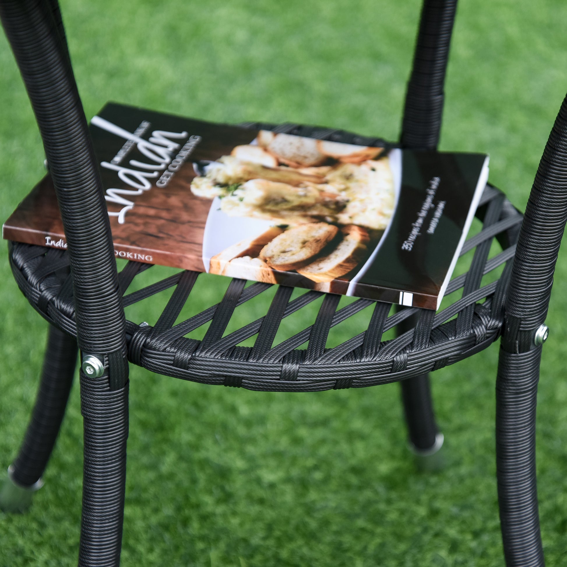 3 Pieces Rattan Bistro Set, 2-Tier Coffee Table and Chairs with Cushions, Black