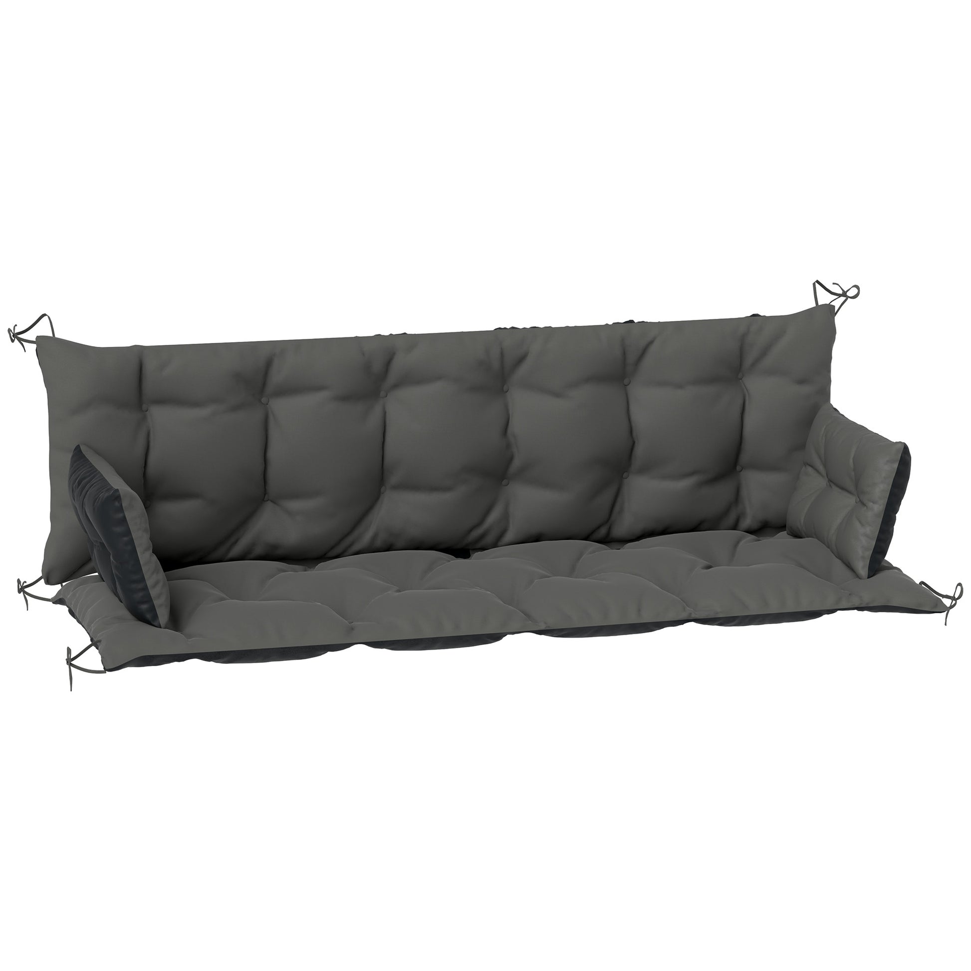 3-Seater Bench Cushion, 180x110x8 cm, with Ties, Dark Grey + Black