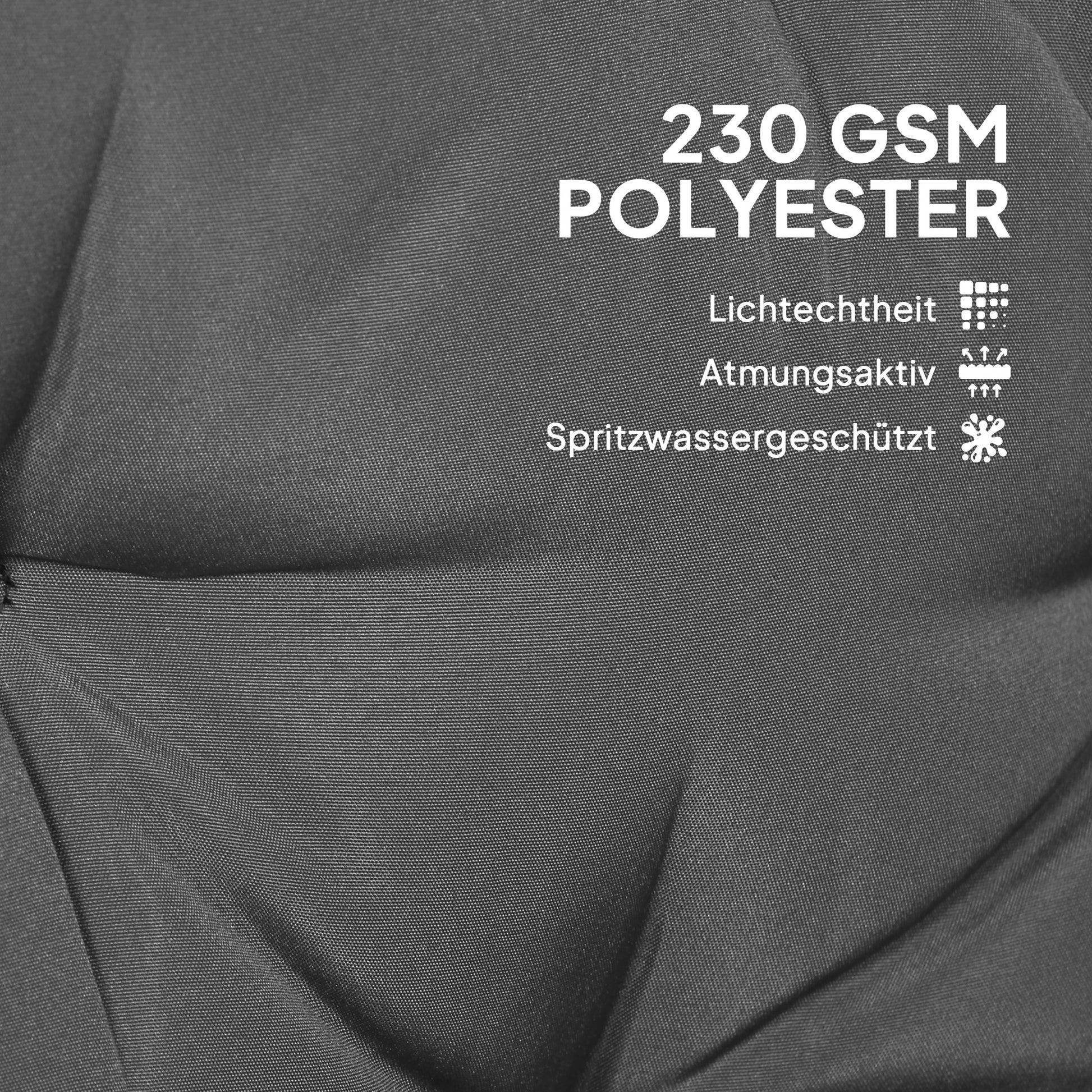 230 g/m² Polyester Fabric: Made from thick polyester, this chair cushion set offers increased robustness and durability. It is also splash-proof, making it easy to wipe clean.