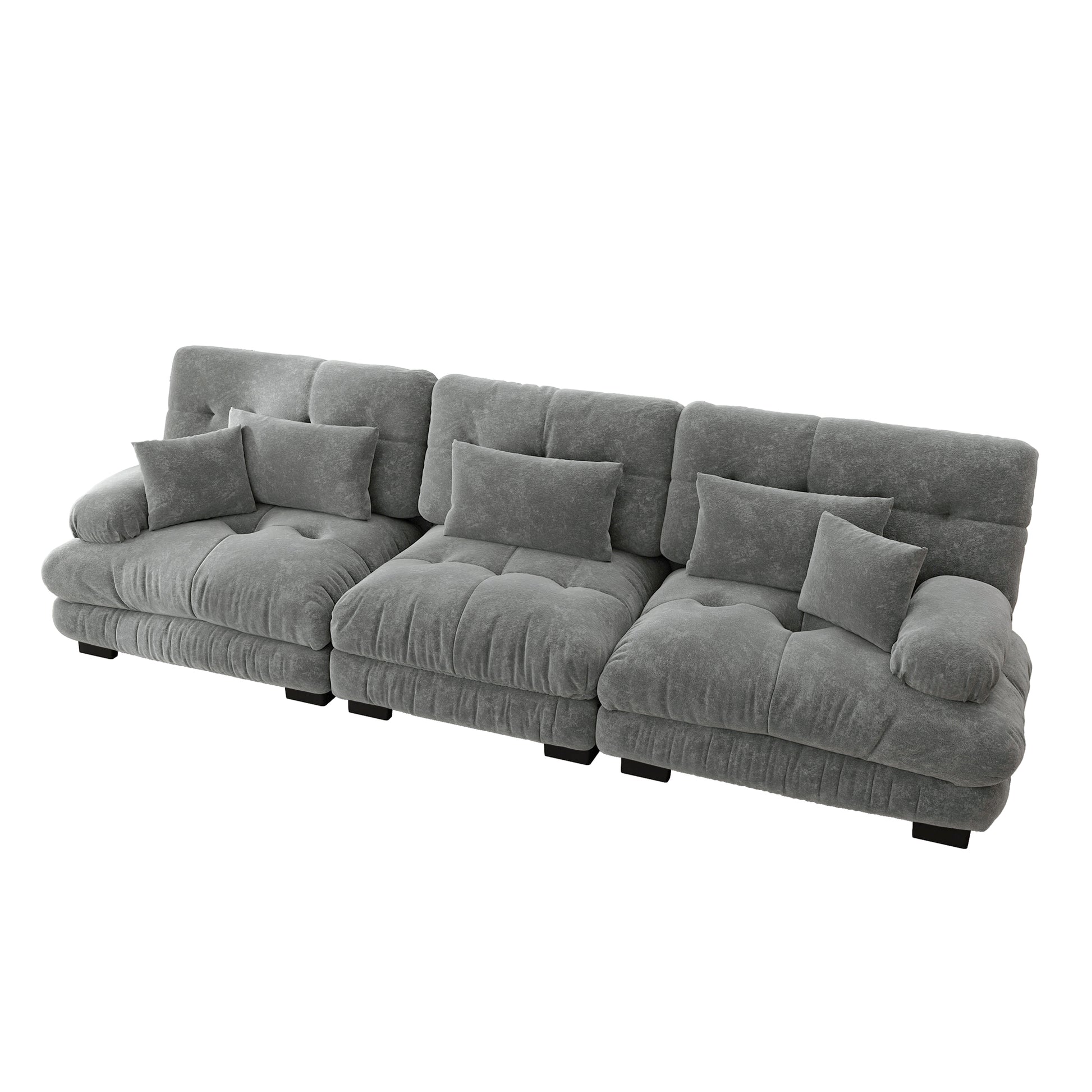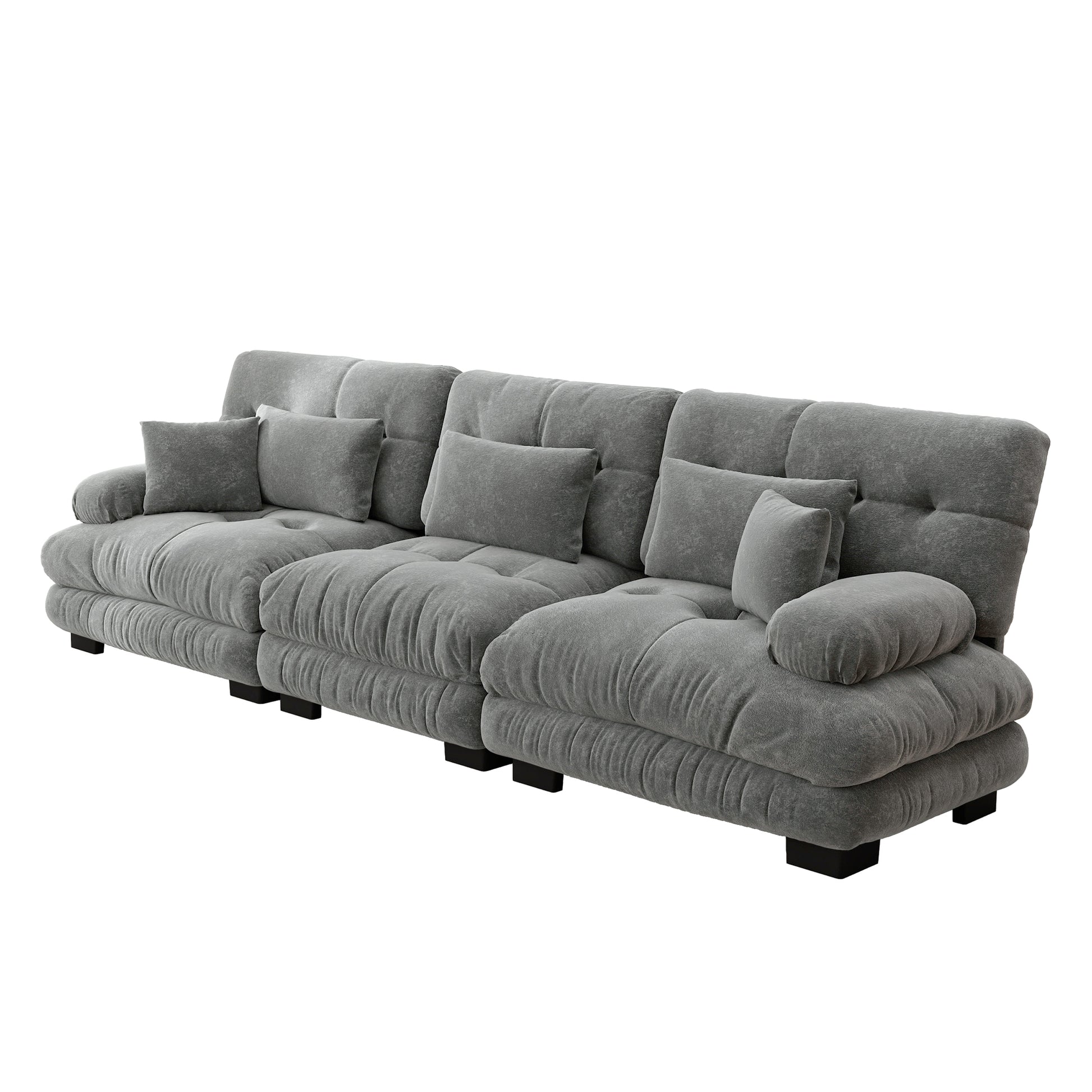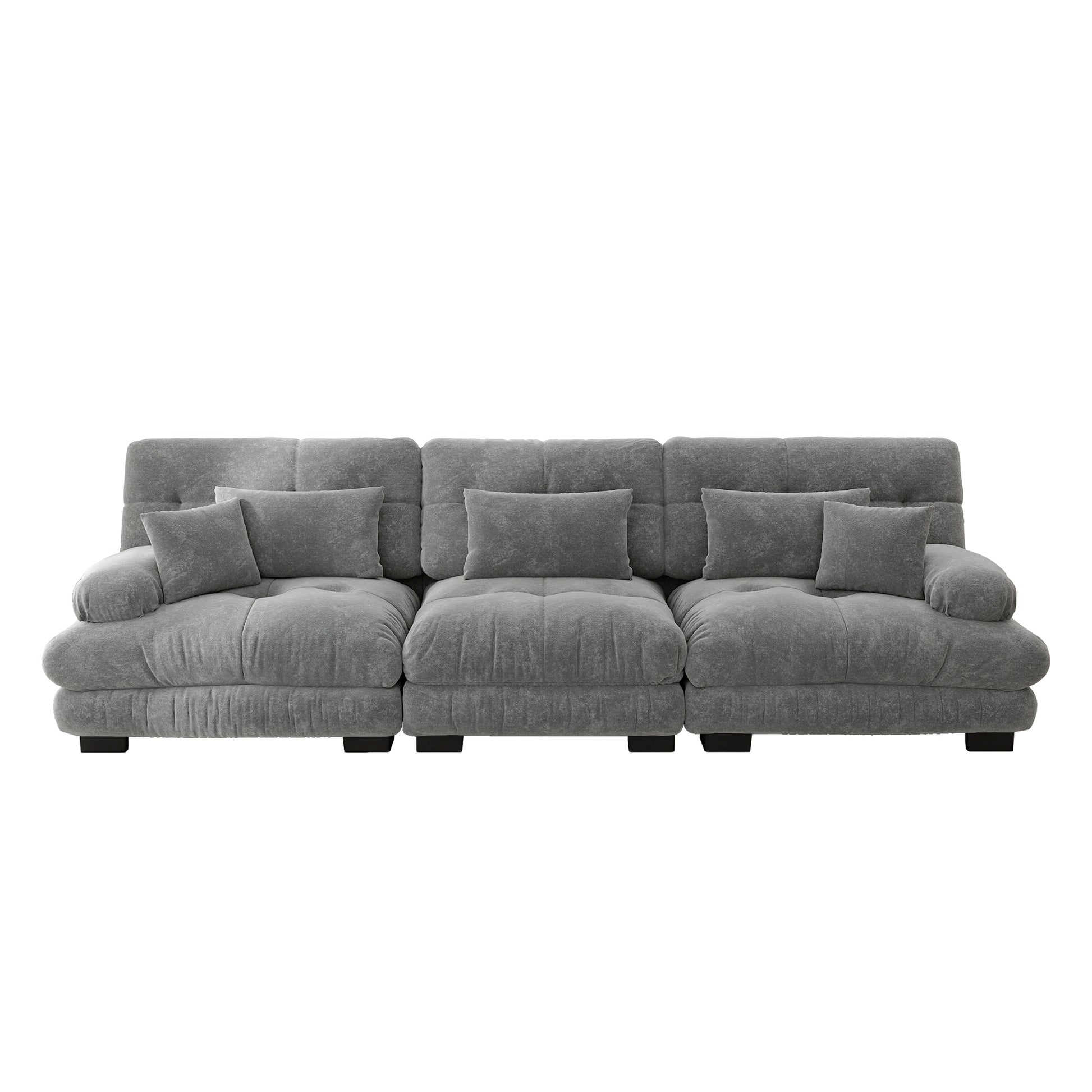 Cloud-shaped seat cushions with no feathers or wood inside offer excellent support and elasticity for your body. The deep seat provides additional support and comfort for the waist. Decorative pillows and lumbar cushions offer extra support. You can sit down and feel the sofa backrest adjust perfectly and supportively while enjoying unparalleled comfort. Whether watching TV, reading, or chatting with family, this sofa offers you the ultimate comfort experience.