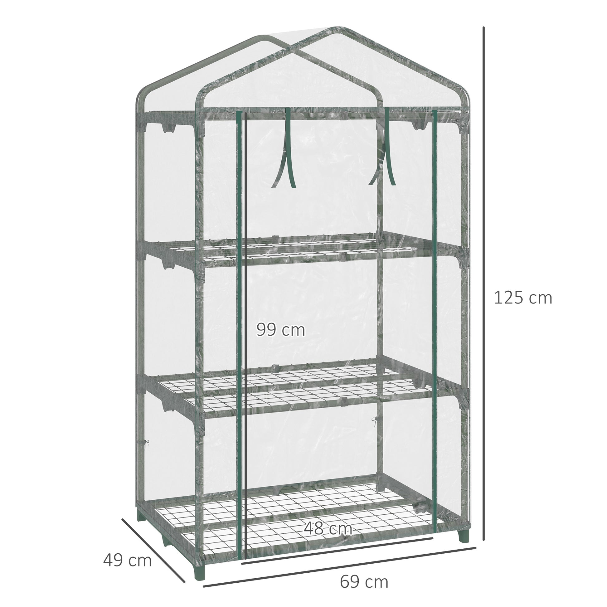 125cm compact design: An easy way for you to grow plants, vegetables, flowers, and more. This small greenhouse can be used almost anywhere, both indoors and outdoors.