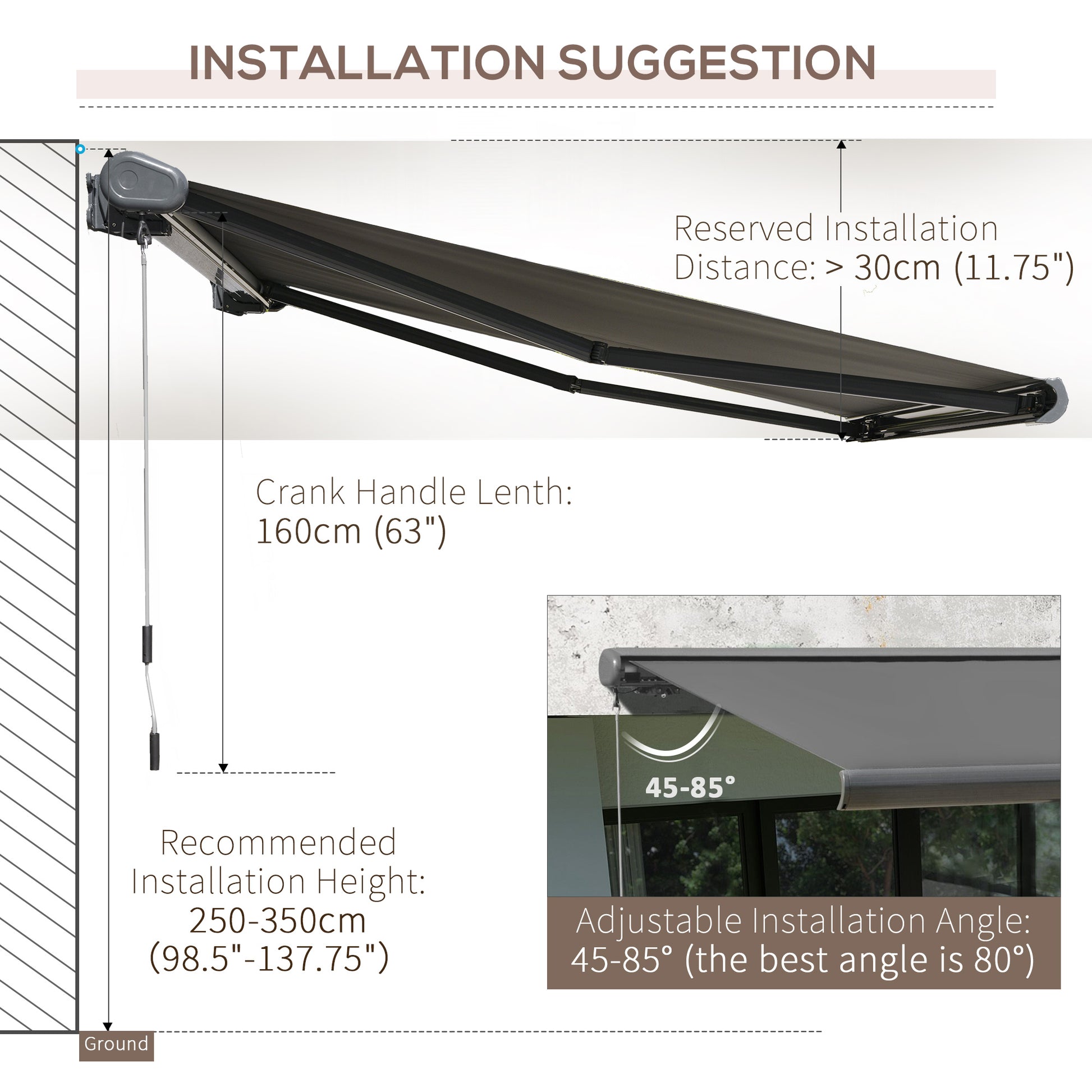 Weather-resistant canopy: Made from 280g/m² polyester for durability, with a PVC coating, our retractable awning protects you from UV rays and sun glare while retaining its color and condition.