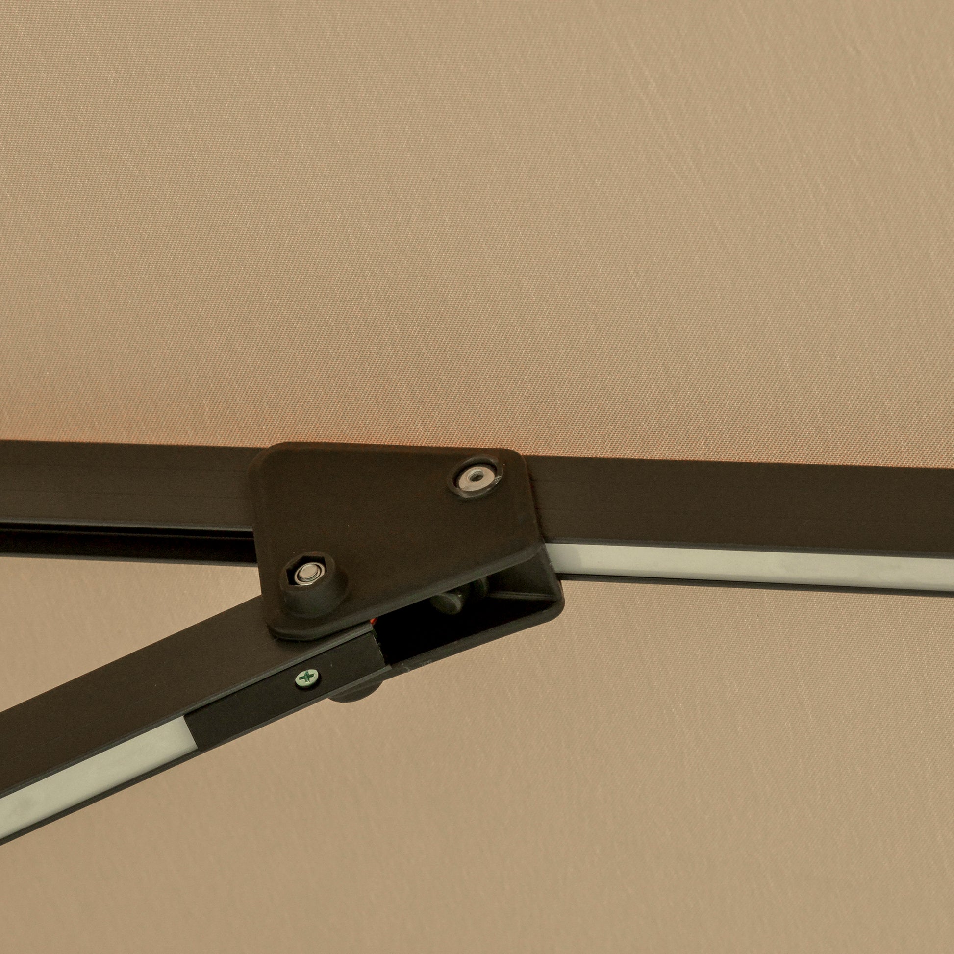 Solar LED lights charge in the sun during the daytime and light up at night. These lights are located on the inner umbrella ribs for a lovely atmosphere, extending your time in the garden or outdoors with family and friends.