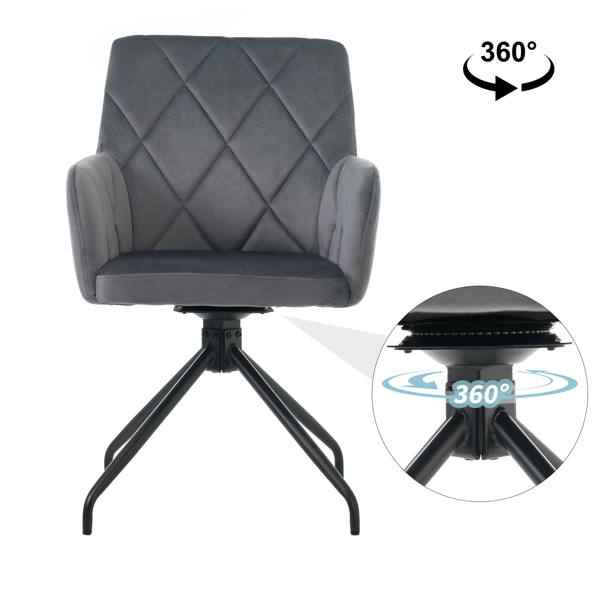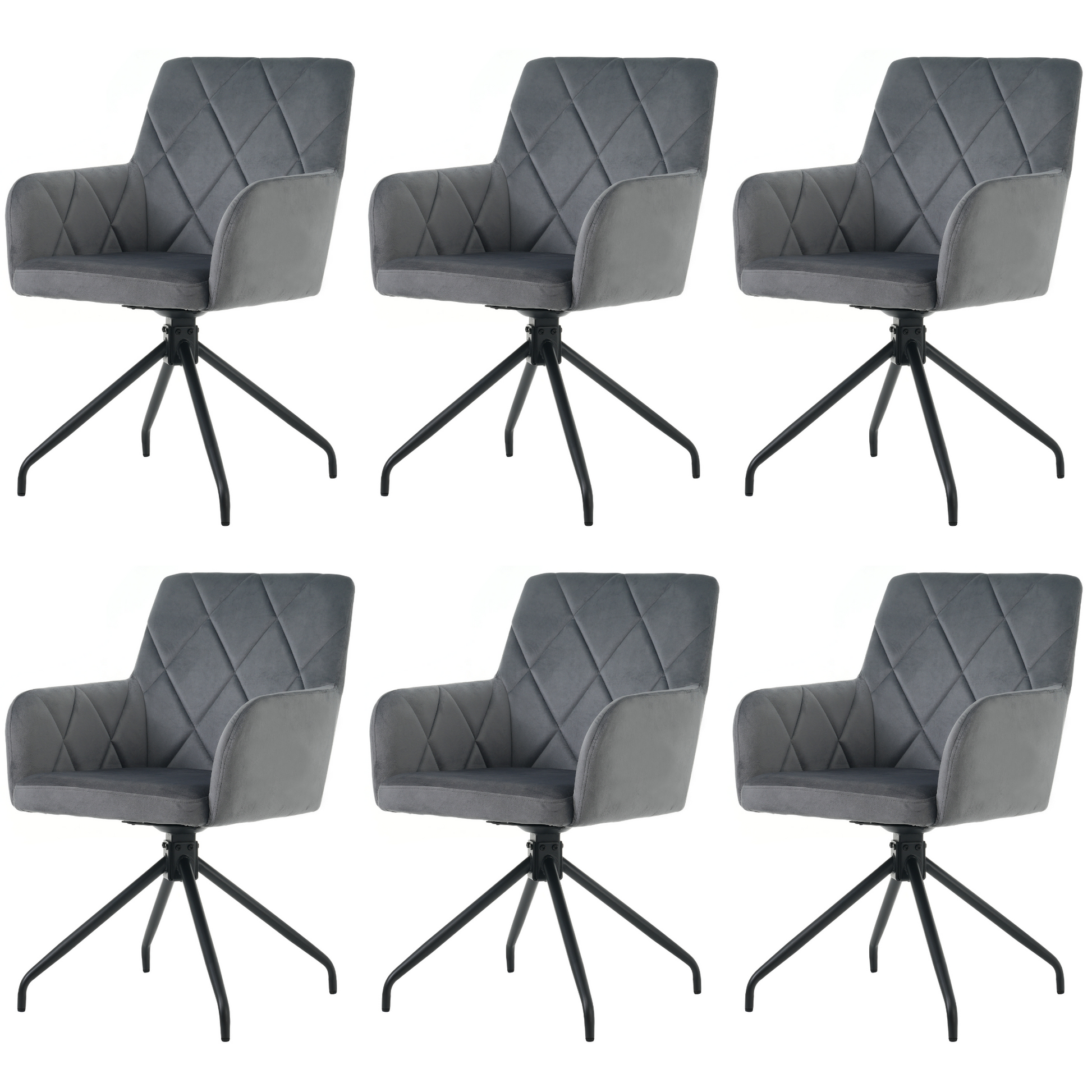 360° Swivel Dining Chairs, Set of 6 with Diamond Pattern and Lumbar Support, Anthracite Velvet