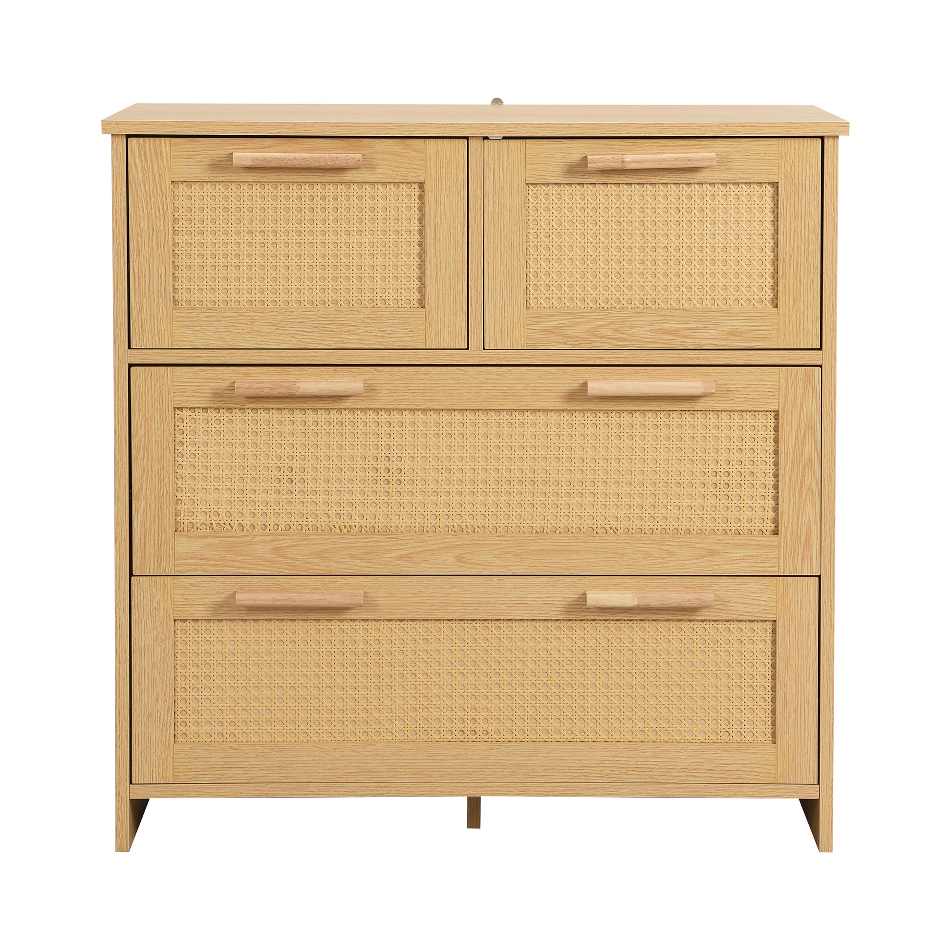 4-drawer rattan cabinet with solid wood handles - suitable for bedroom, living room, dining room, hallway, W80/H80/D38 cm.