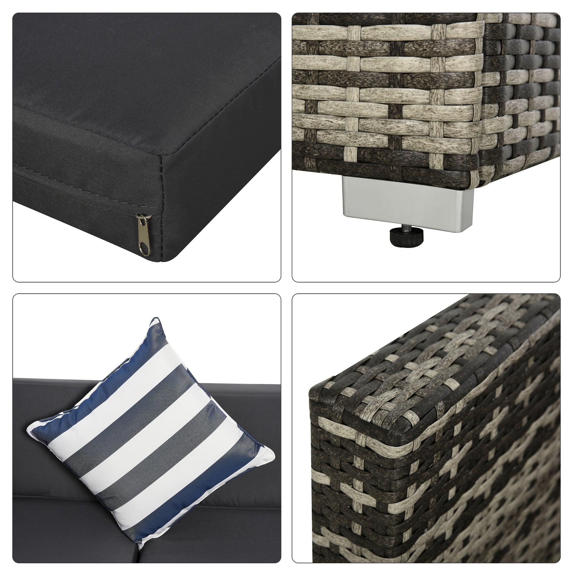 4-Seater Rattan Sofa Set Sectional Wicker Cushion Grey