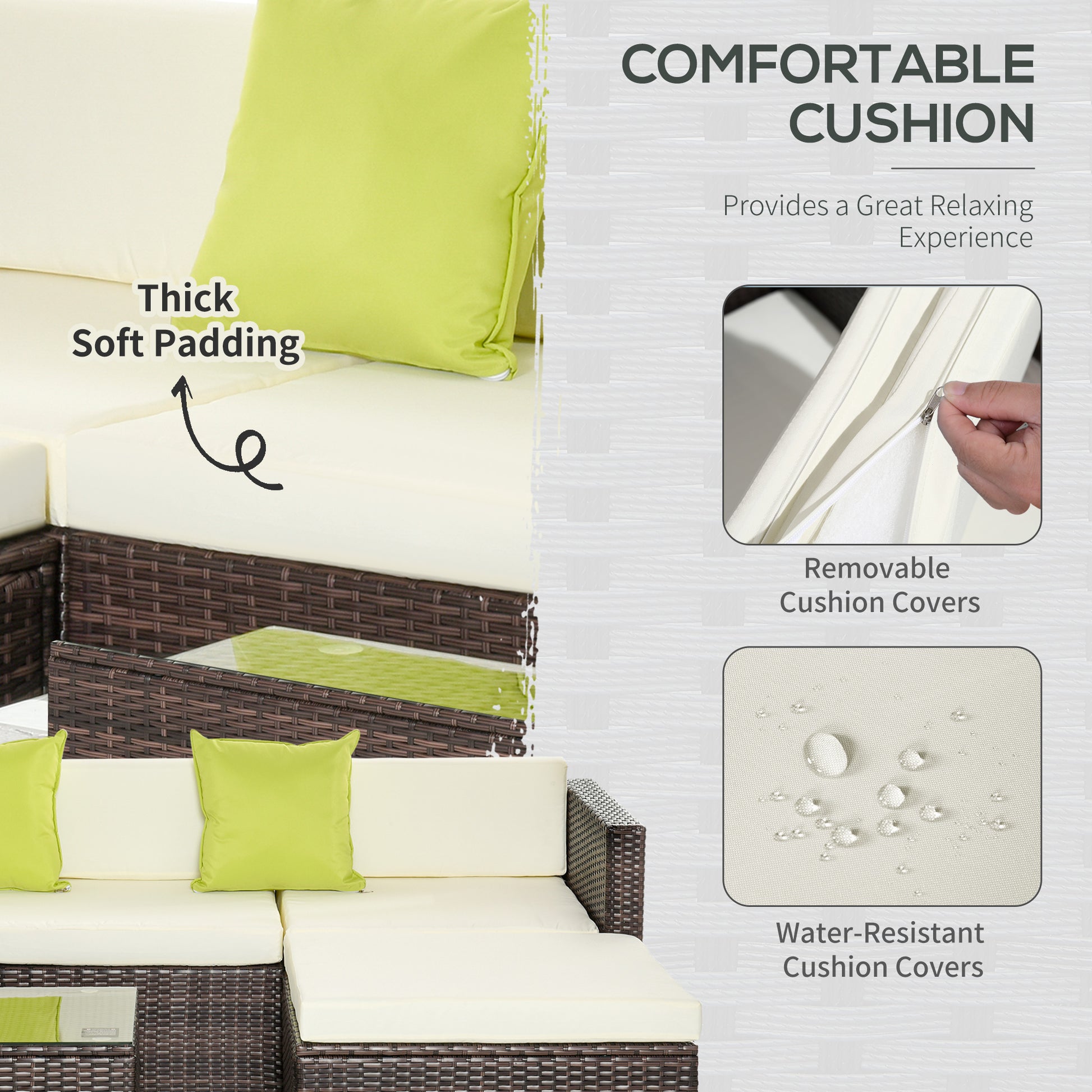 4-Seater Sofa Set Sectional Coffee Table Rattan Brown