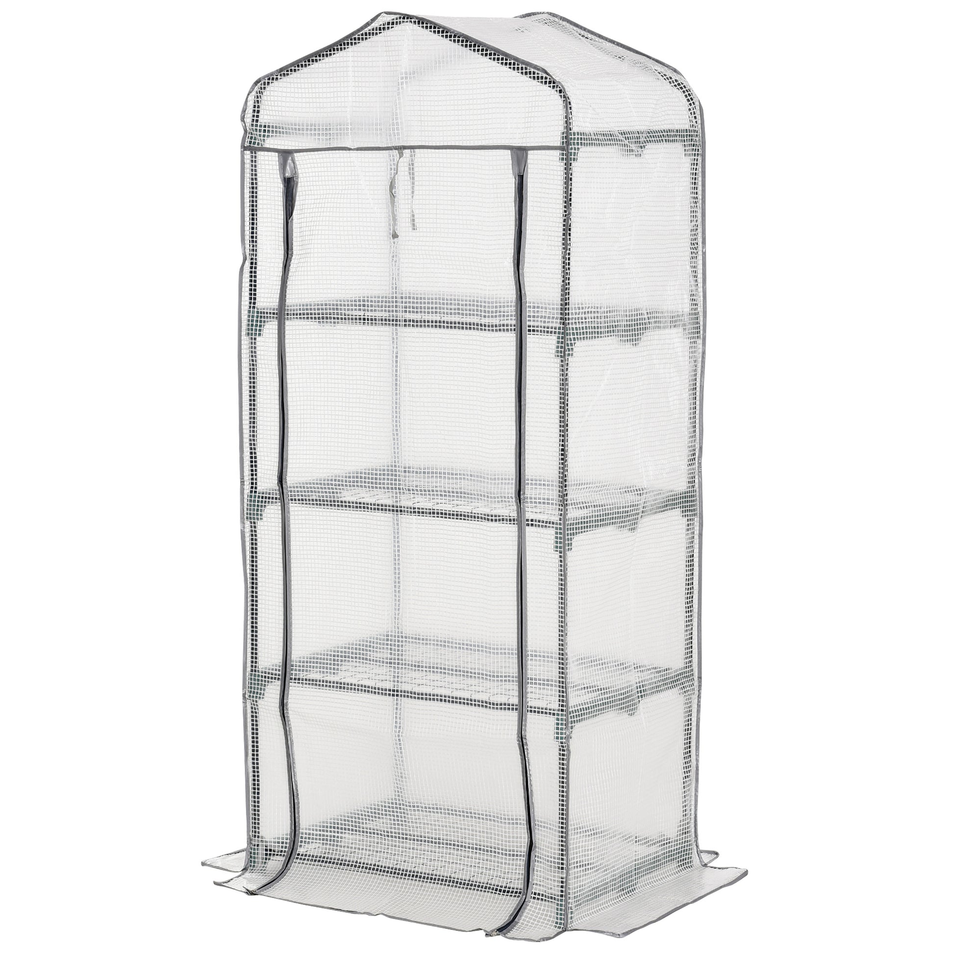 4 Tiers Mini Portable Greenhouse Grow Shed Metal Frame PE Cover