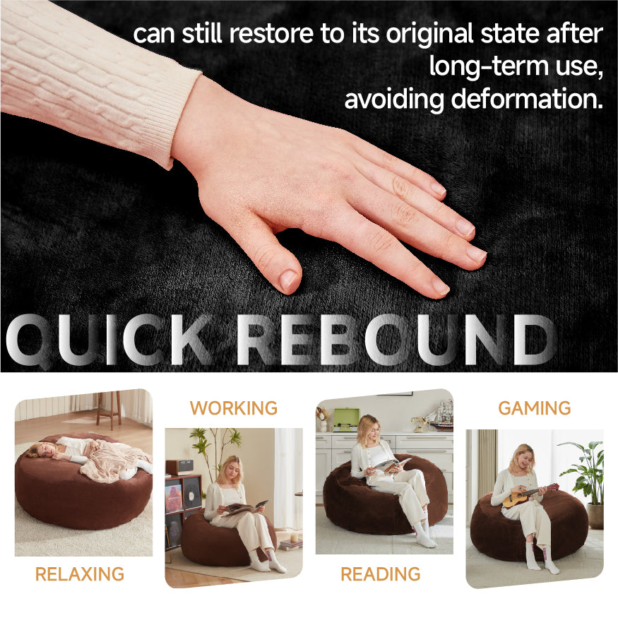 5-Foot Bean Bag Sofa Chair Ultra-Soft Reading Lounger for Adults, Black Flannelette
