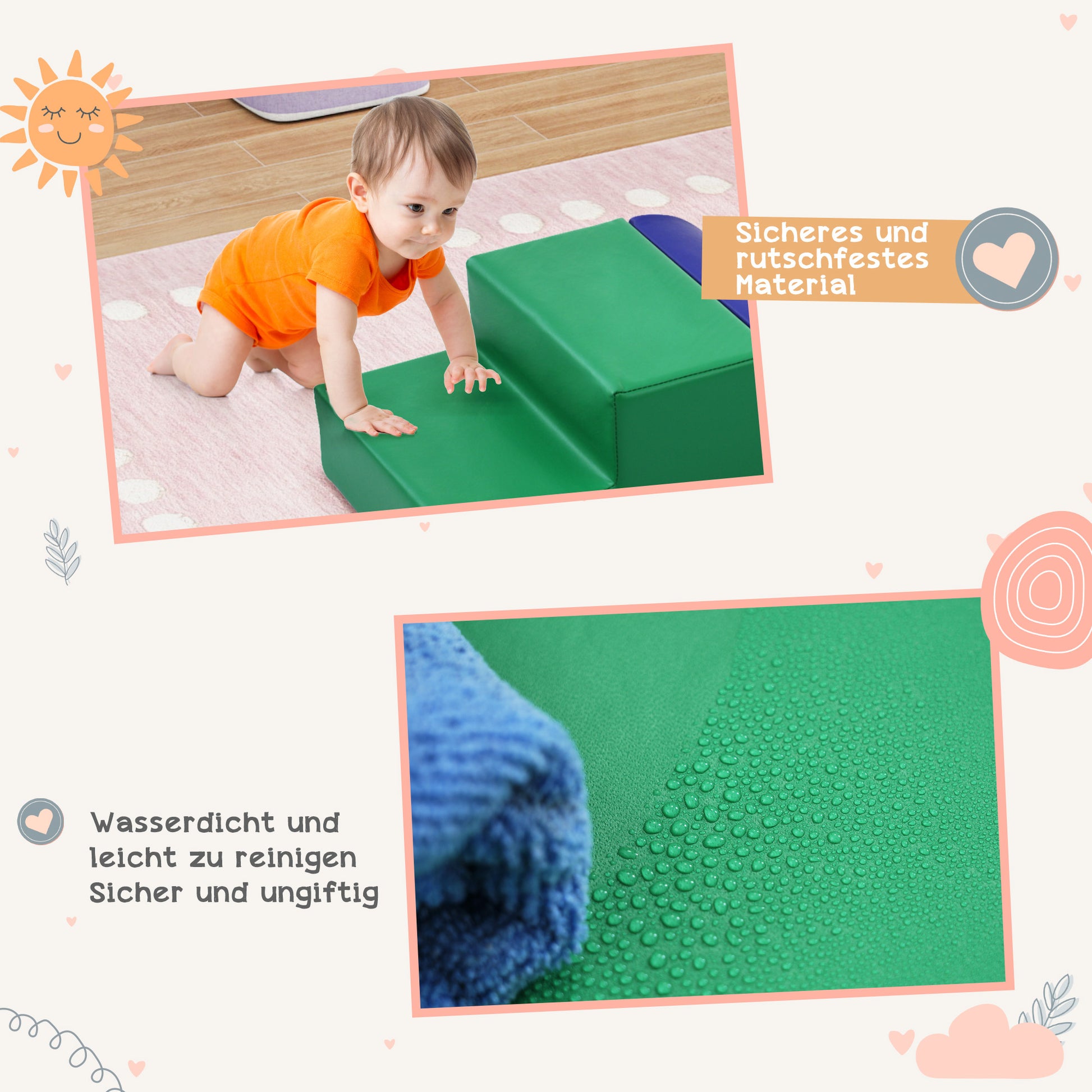 1. 5-in-1 multifunctionality: This set of five building blocks offers countless play possibilities. Children can combine the building blocks as they wish to create exciting play worlds. Whether as a climbing frame, crawling area, or even a comfortable mat – the possible uses are diverse.