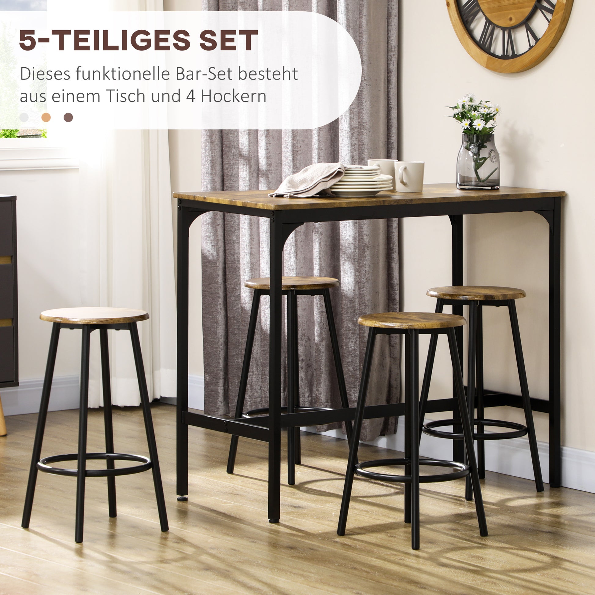 5-Piece Bar Table Set, 4 Bar Stools Industrial Design Rustic Brown Metal