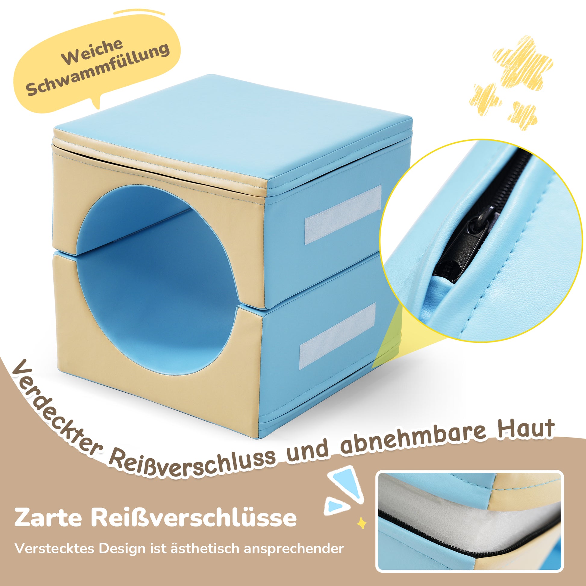 · Safety-optimized design: Hidden zippers prevent sharp edges and ensure a safe play environment.