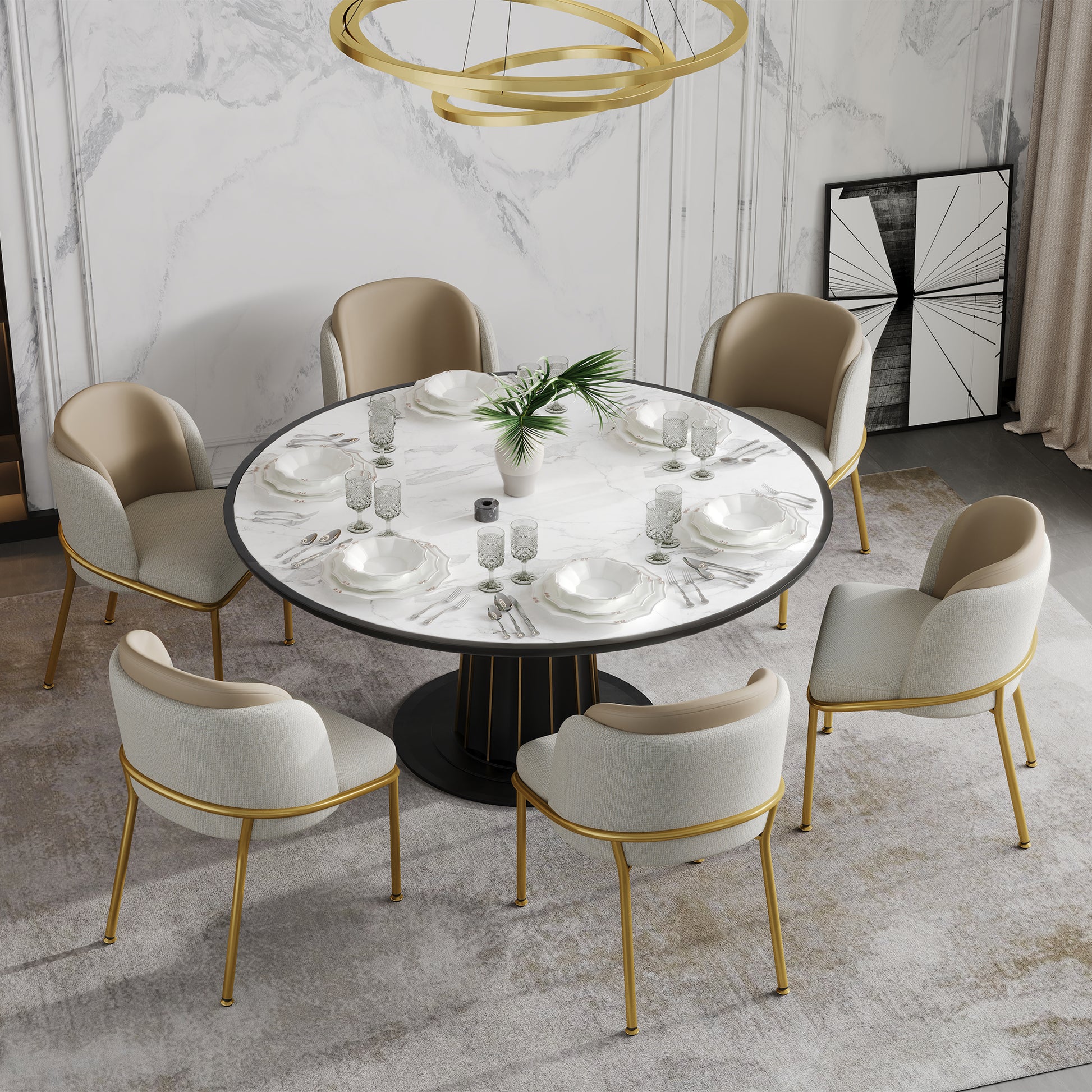 6 Modern Chairs, Angled Legs Adjustable Feet, Beige