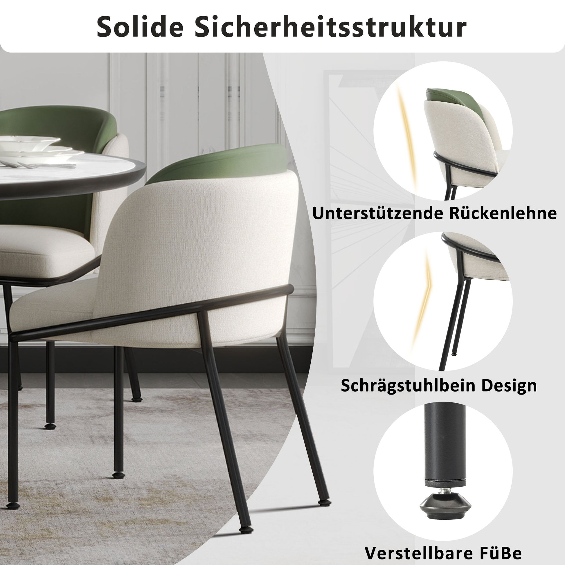 6 Modern Chairs Angled Legs Adjustable Feet Beige+Green