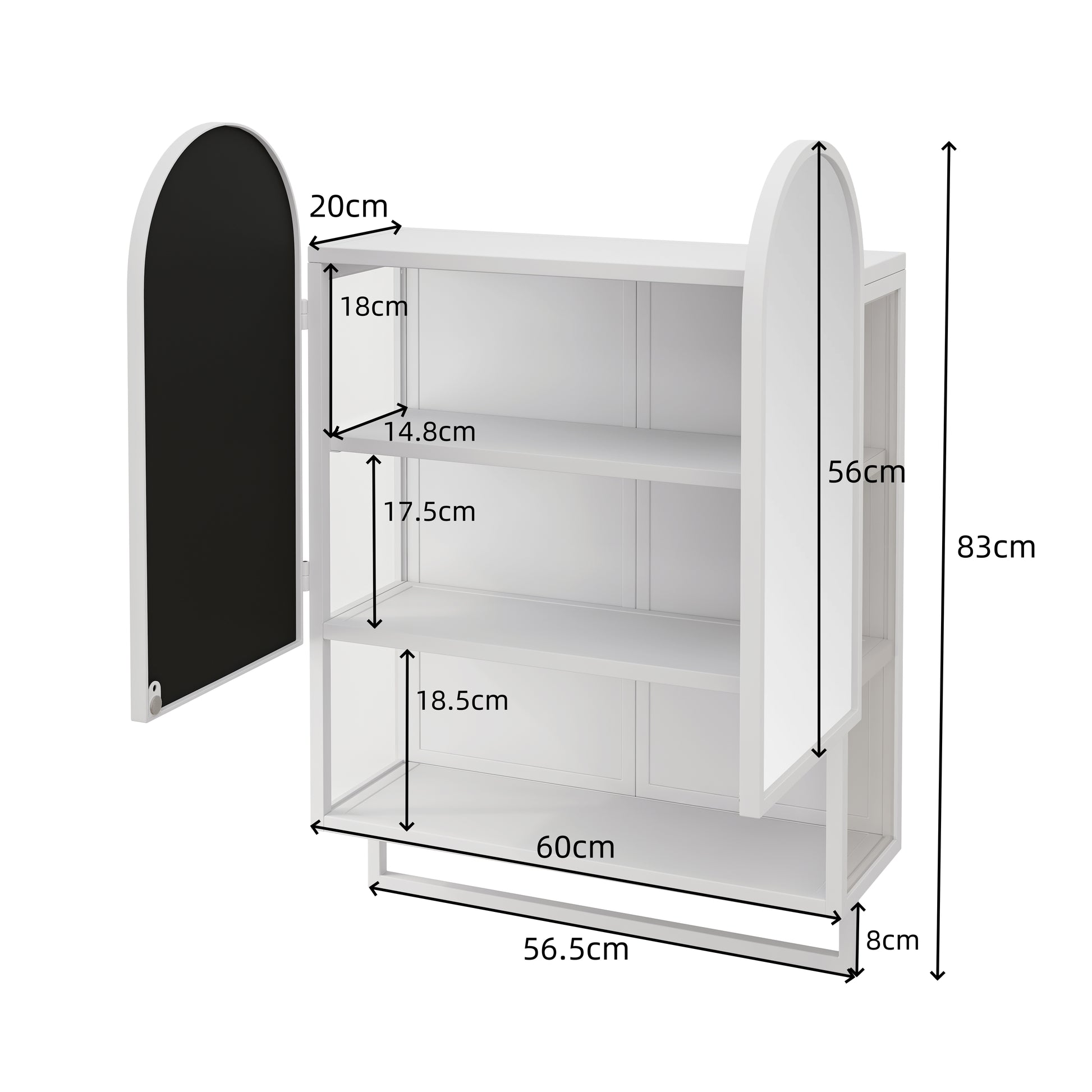 60CM Mirror Cabinet Double-Arched 2 Doors Metal Wall Storage White