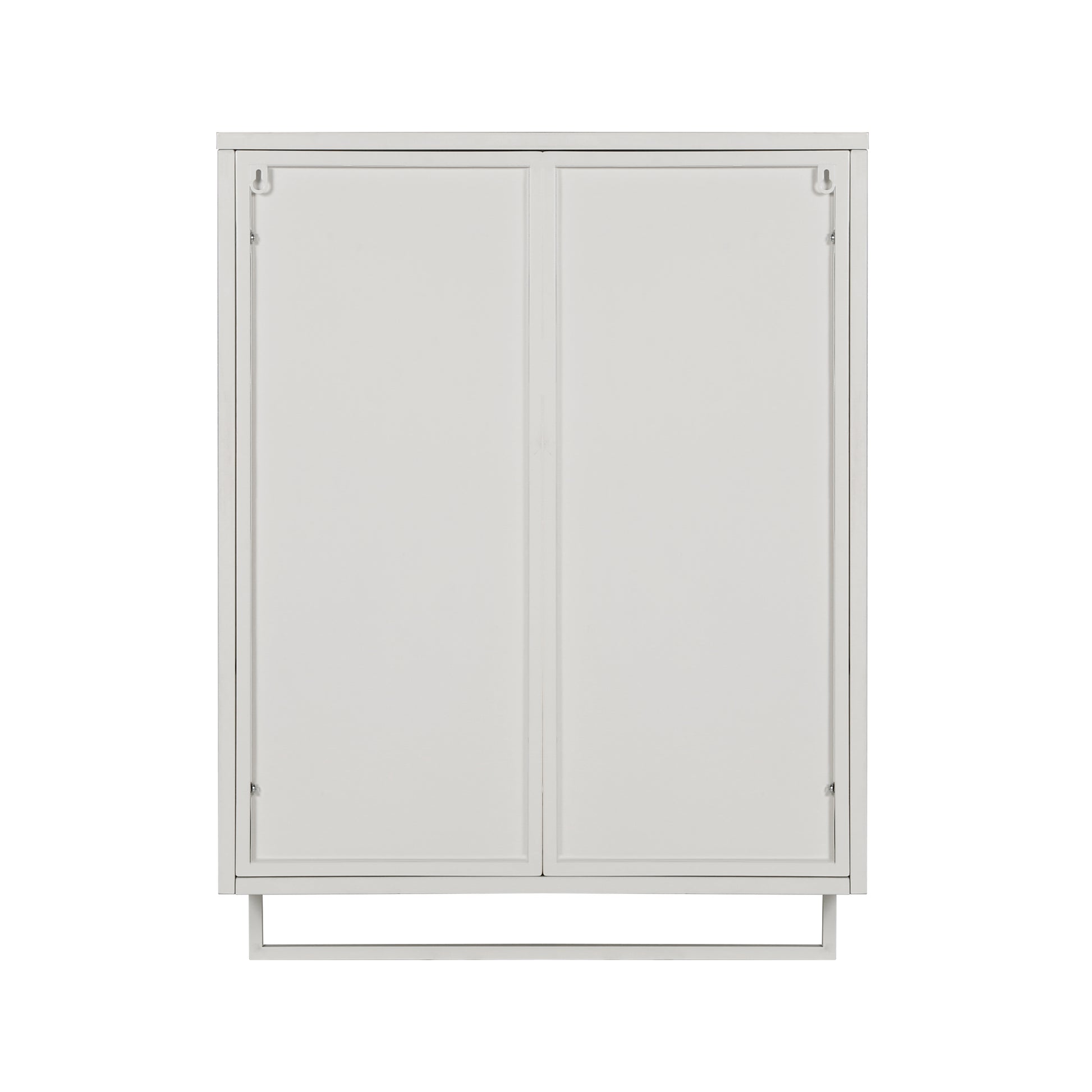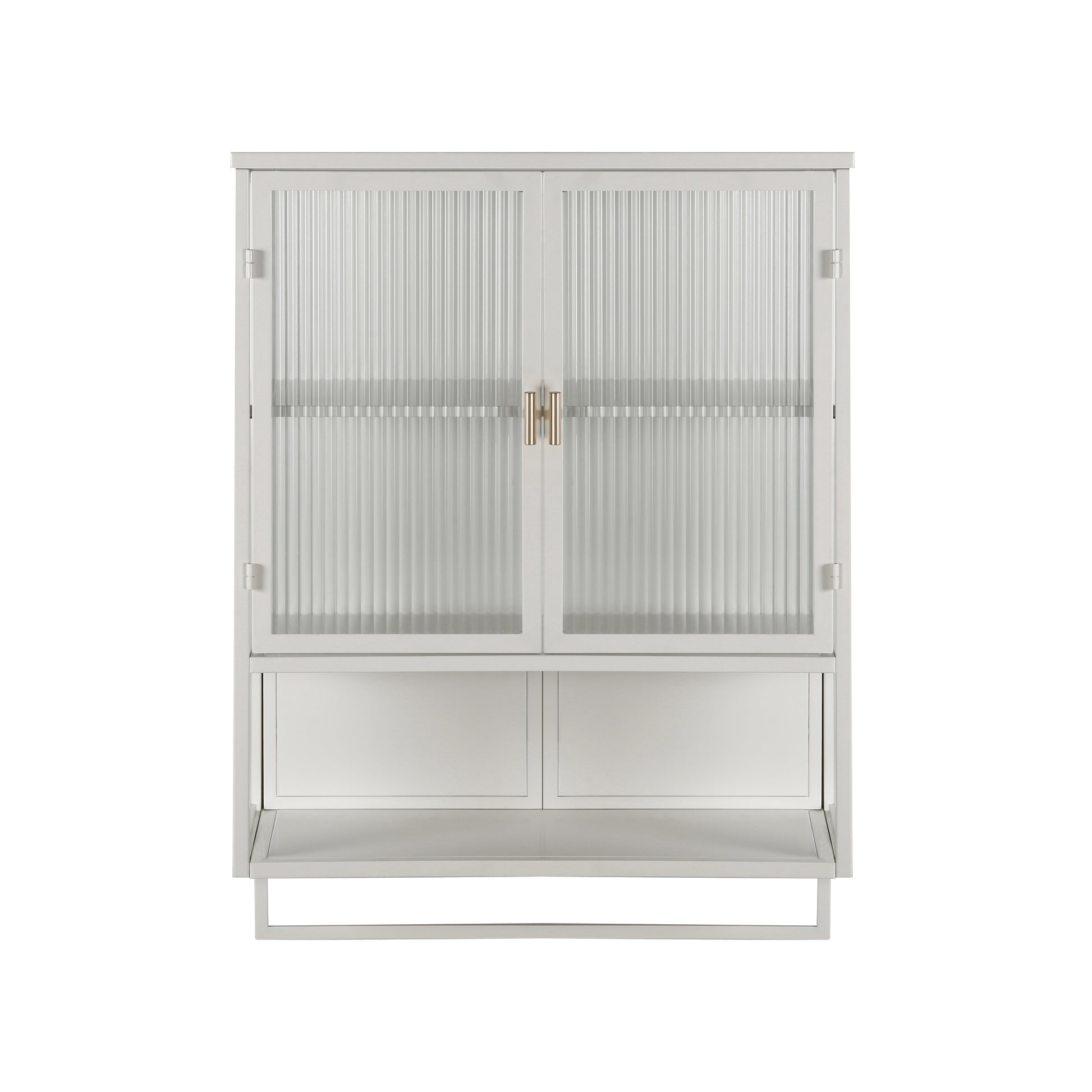 60CM Wall Cabinet with Glass Doors, Two-tier Enclosed Storage, Open Shelf, Towel Rack, White