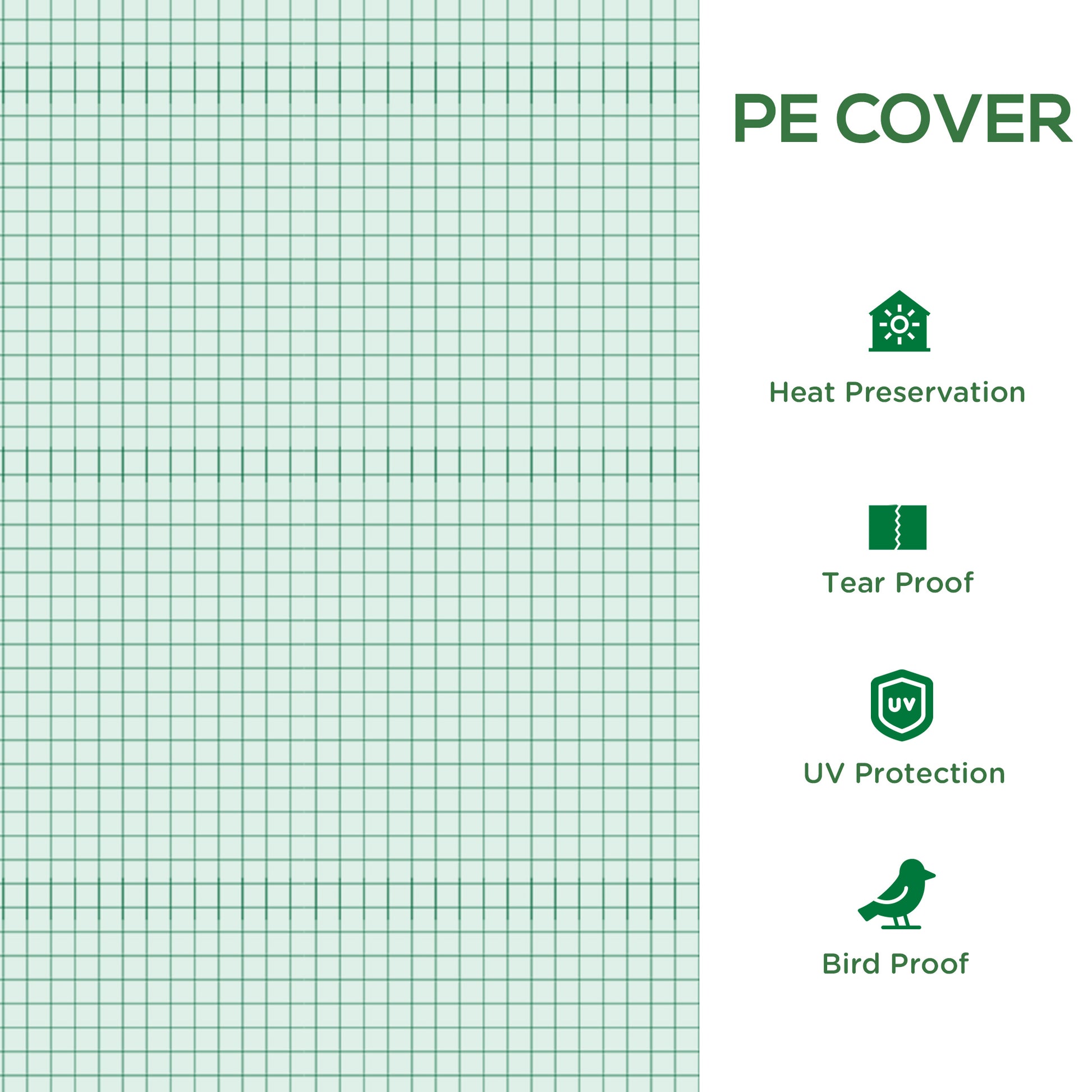 PE Cover: The plastic greenhouse cover protects the interior from light rain and wind while trapping heat, providing excellent conditions for healthy growth all year round. It attaches to the frame with the included tape.