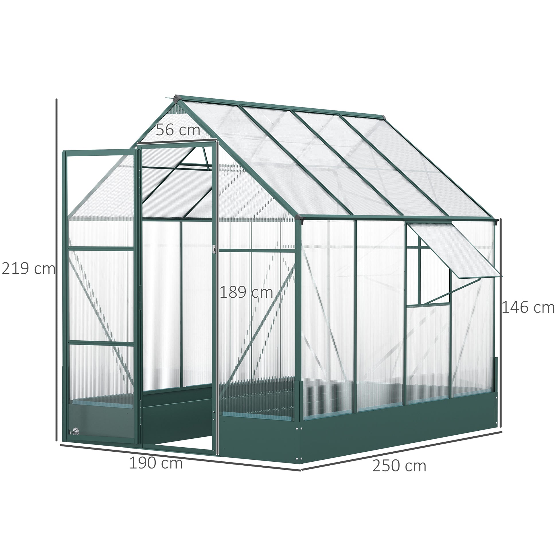 ALUMINIUM FRAME: Naturally lightweight yet robust and resistant to rusting, it keeps the green house for garden structure in shape. POLYCARBONATE PANELS: Tough outside greenhouse panels which keep the heat in and allow sunshine to pass through the hobby greenhouse. 30um resistance to protect your crops from harsh UV.