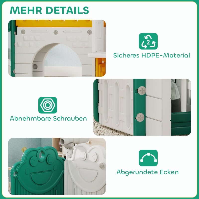 7-in-1 Children's Slide Indoor Playground with Climbing Frame and Playhouse, Yellow and Green Plastic