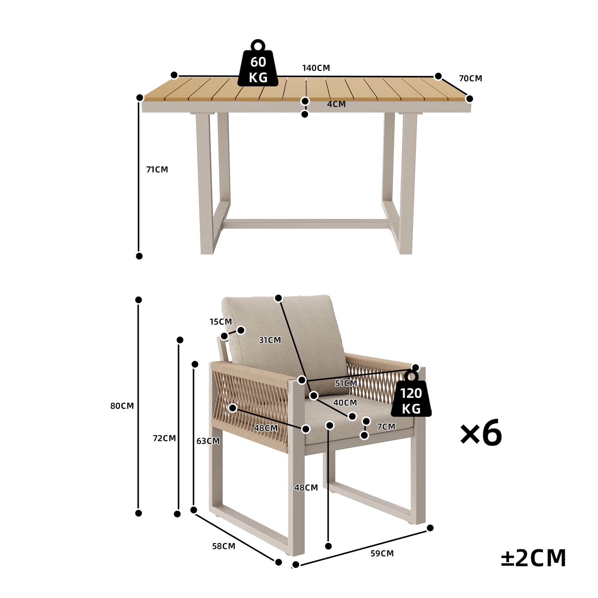Weight Capacity: 120 kg per table, 60 kg per sofa chair