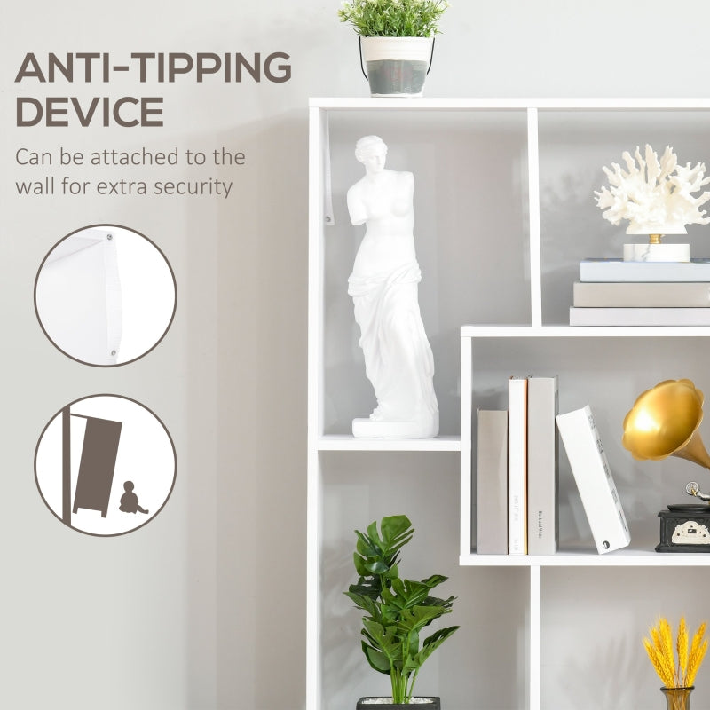 Beautiful Design: Simple yet elegant, this bookcase features eight different sized shelves locked together in a uniquely shaped design. It is ideal for keeping books, albums, photos, and more. The eight separate shelves allow you to organize your items efficiently, providing plenty of storage and display room.