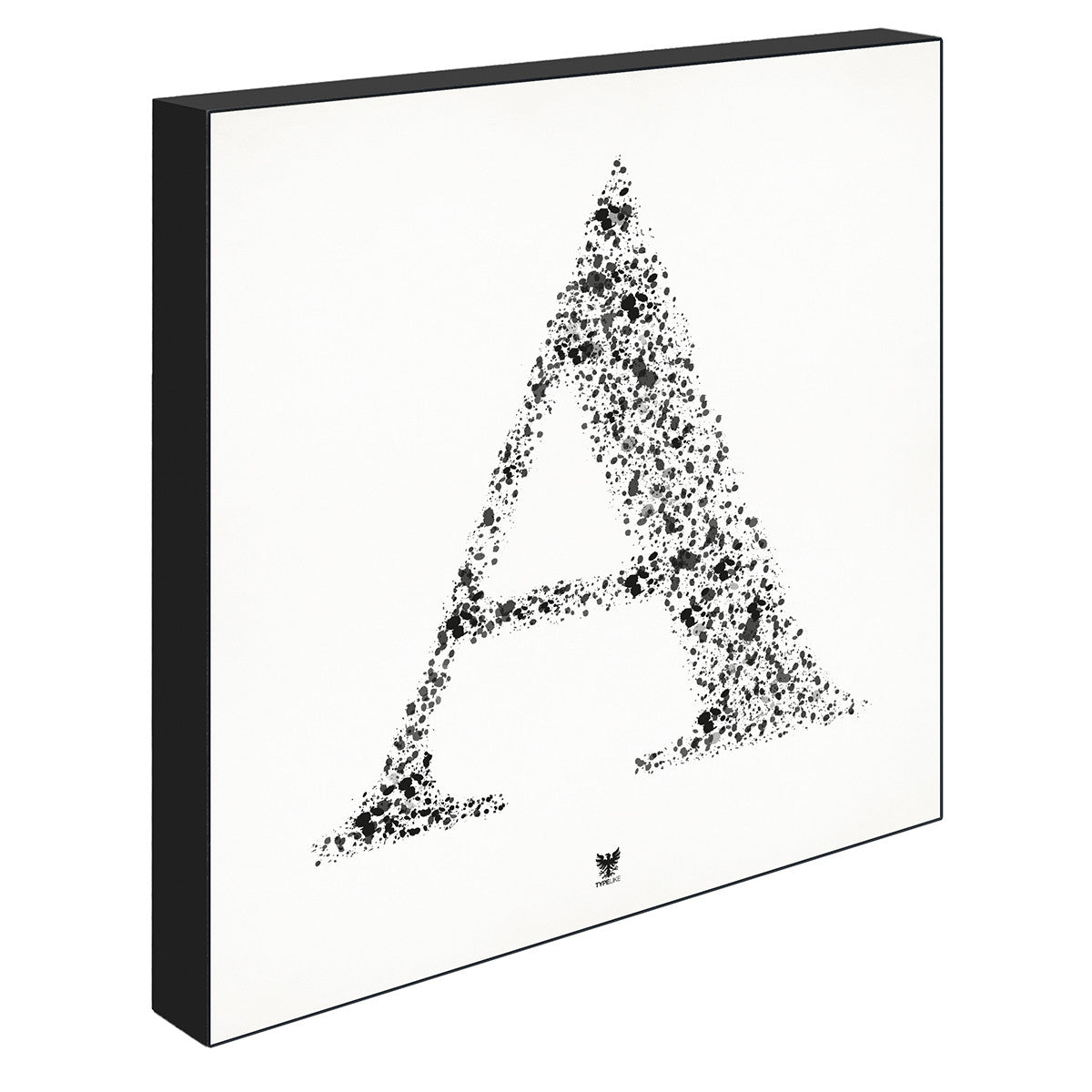 This art block shows a large letter 'A' on a white background. 21cm x 21cm